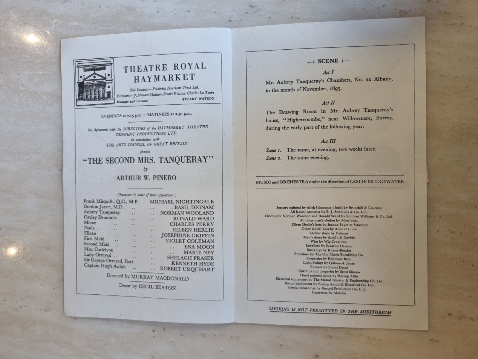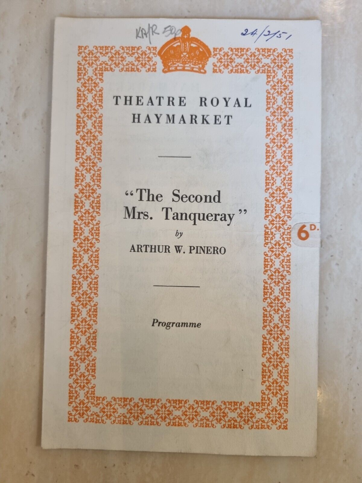 original Theatre programme that present on 1950 ”THE SECOND Mrs.TANQUERAY by Arthur W. Pinero.