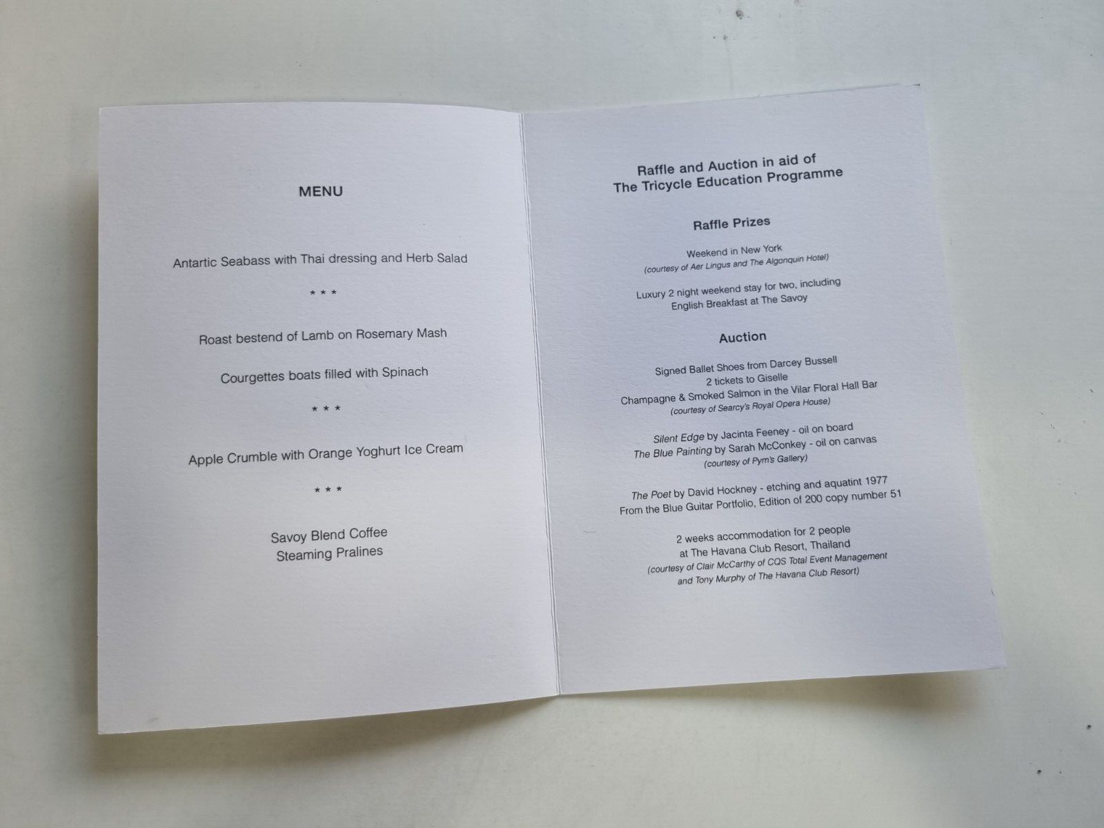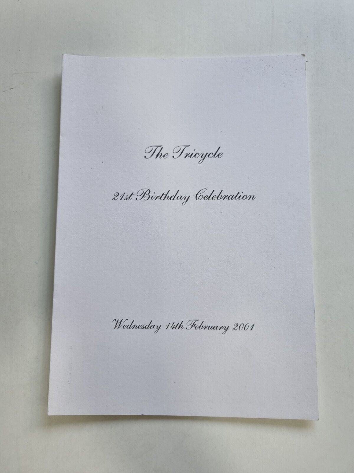 The Tricycle 21st Birthday Celebration Menu 14th February 2001