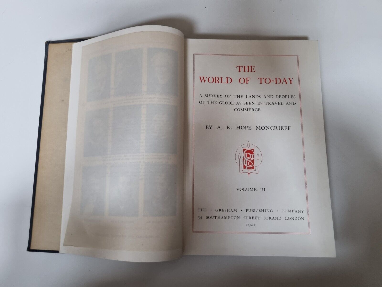 You are purchasing very collectible hardback book – The World of To-day: A survey of the lands and peoples of the Globe as seen in Travel and commerce . Contains over 288 pages of texts and photographic Illustrations by A. R. Hope Moncrieff . Published by The Gresham Publishing Company. This lovely Original book remains a fantastic source of information about the world. The Book remain in very good condition for its age. Please see the pictures as it forms part of the description.