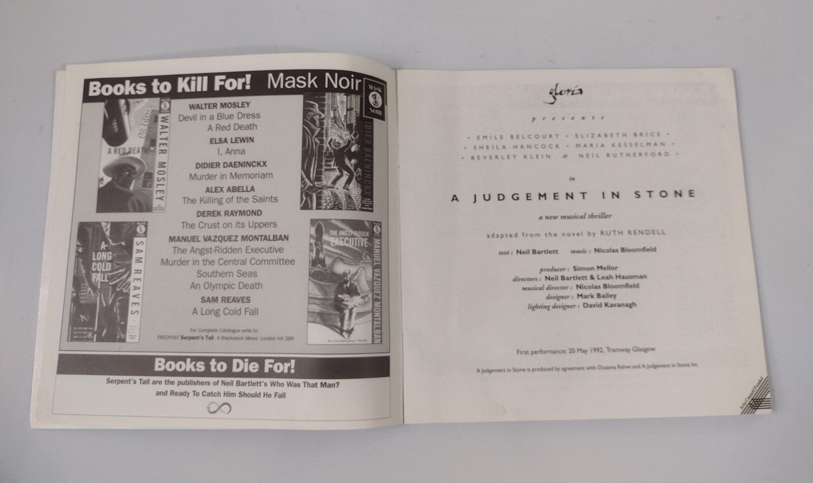 Theatre Programme A Judgement In Stone-Emile Belcourt Elizabeth Brice S Hancock