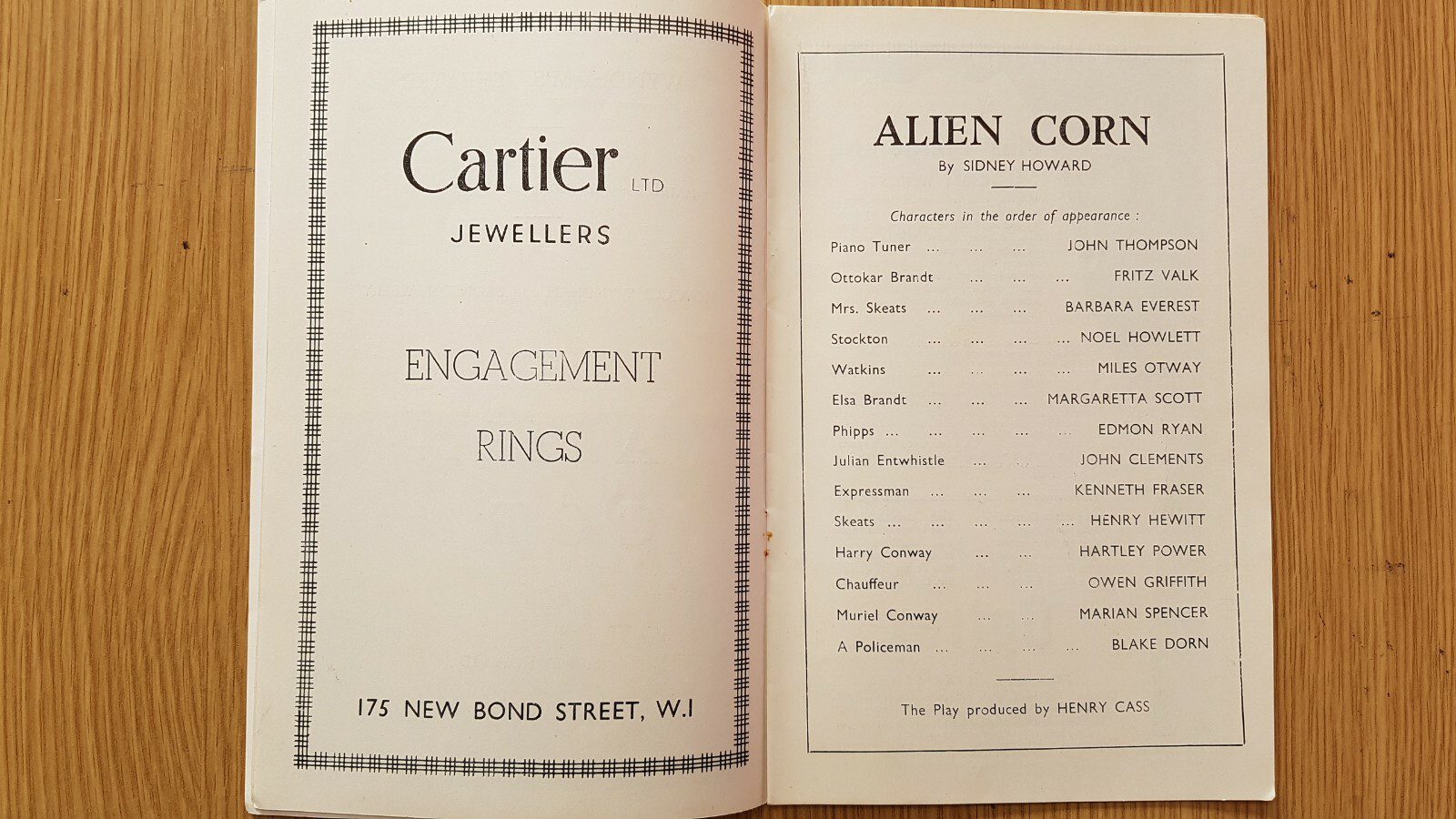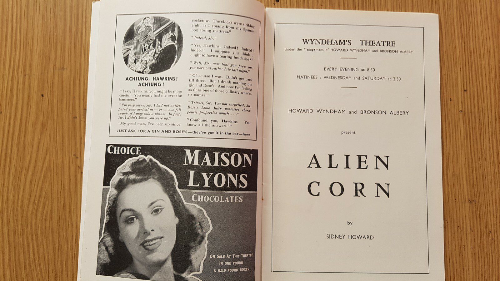 Theatre Programme Alien Corn – Hartley Power Margaretta Scott Fritz Valk