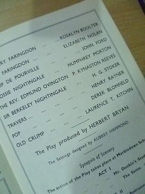 Theatre Programme Housemaster – Hilda Trevelyan Joan White J H Robert