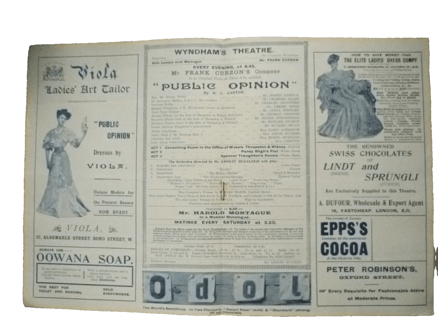 You are purchasing vintage & original programme of-:Wyndham’s Theatre Programme- Public Opinion By R C Carton, Frank Curzon