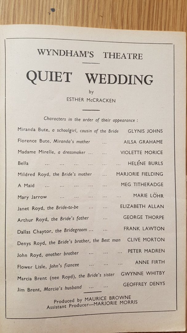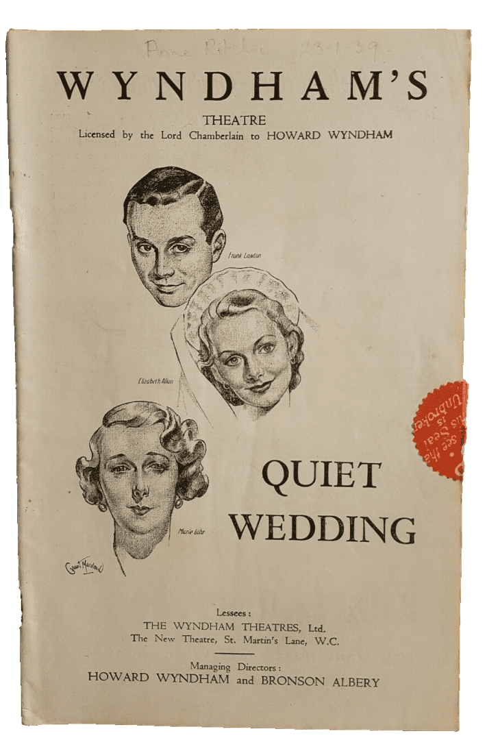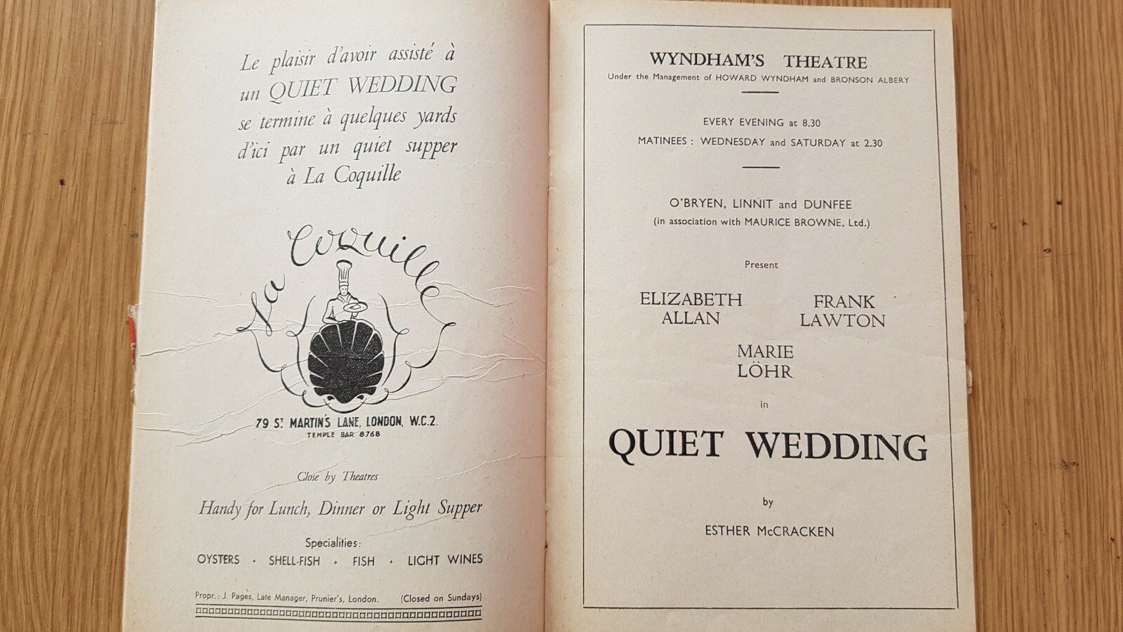 Theatre Programme Quite Wedding – Elizabeth Allen Frank Lawton Marie Loher