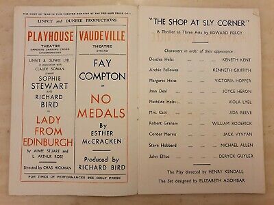 THEATRE PROGRAMME THE SHOP AT SLY CORNER KENETH KENT VICTORIA HOPPER VIOLA LYEL
