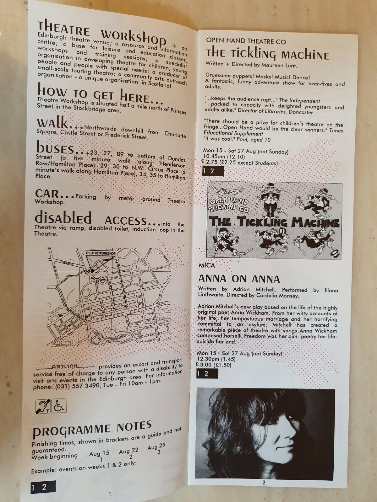 THEATRE PROGRAMME: THEATRE WORKSHOP FRINGE 88 (Various plays)