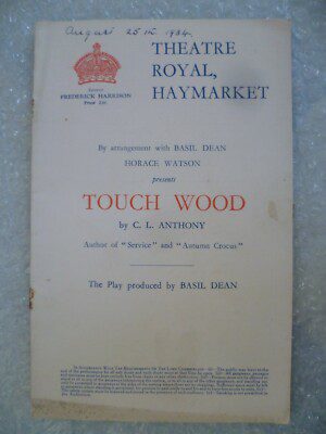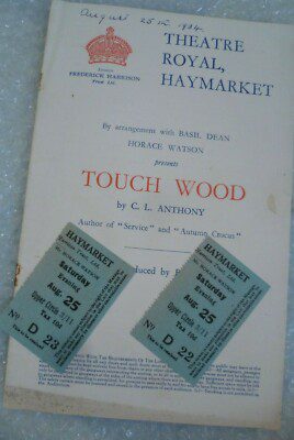 Theatre Royal +TICKET-TOUCH WOOD-Marie Ney,Flora Robson,Ian Hunter,Dorothy Hyson
