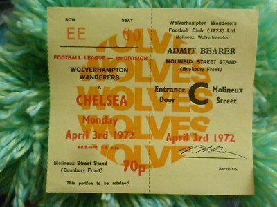 Ticket- 1972 Wolverhampton Wanderers v Chelsea- 3rd April 1972