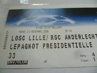 Ticket 2006 Losc Lille v RSC Anderlecht 21 Nov UEFA Champions League