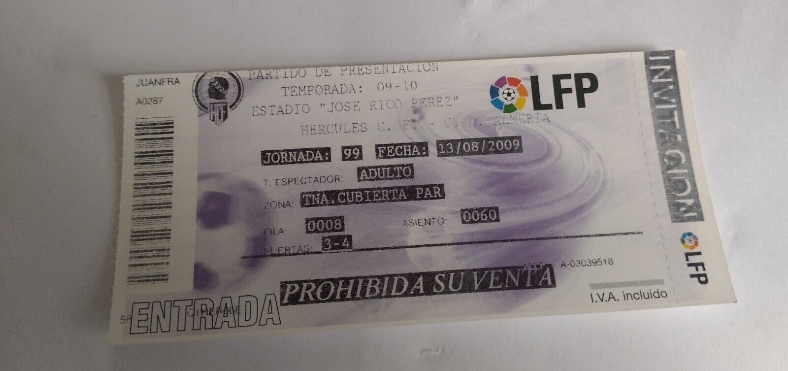 Ticket 2009/10 Hercules v Almeria on 13 August Football Match Ticket