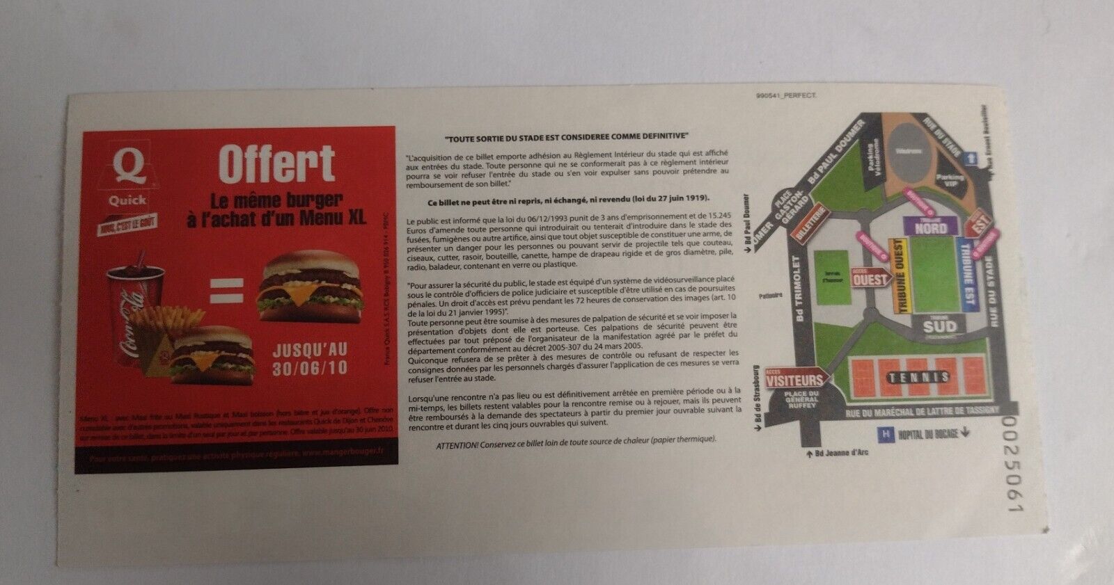 Ticket 2009 Dijon FCO V Havre SC 2 October Championship Match- Original
