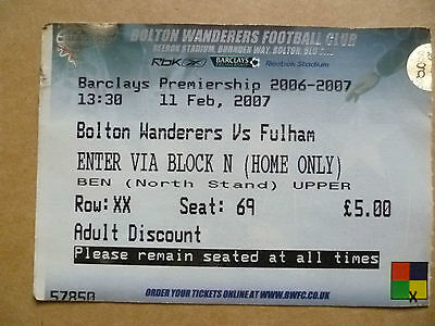 Ticket Bolton Wanderers v Fulham 11 Feb 2007 Premiership Match