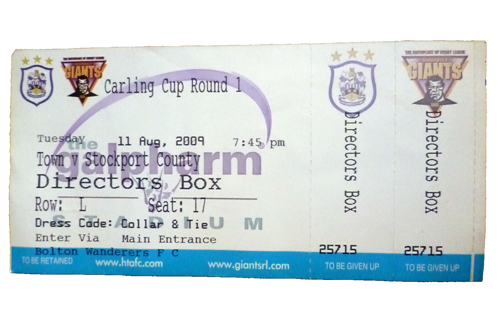 Ticket Huddersfield Town v Stockport County FA Cup 1st RD Ticket 11 August 2009