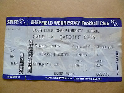 Ticket OWLS v Cardiff City 25 November 2006 Championship League