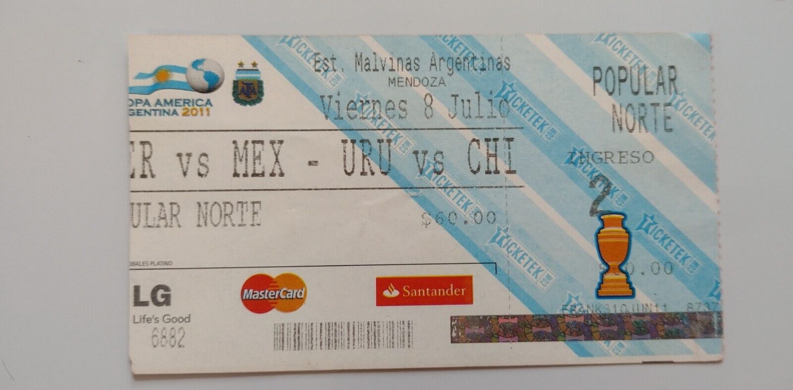 Ticket Peru v Mexico Uruguay v Chile-Mendoza 8 July 2011 Copa América Group C