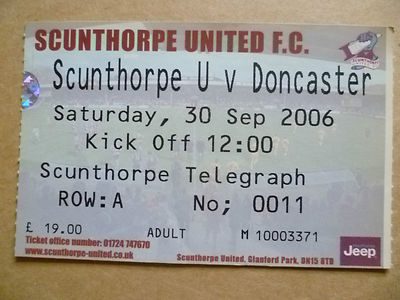 Ticket- SCUNTHORPE UNITED v DONCASTER on 30 September 2006