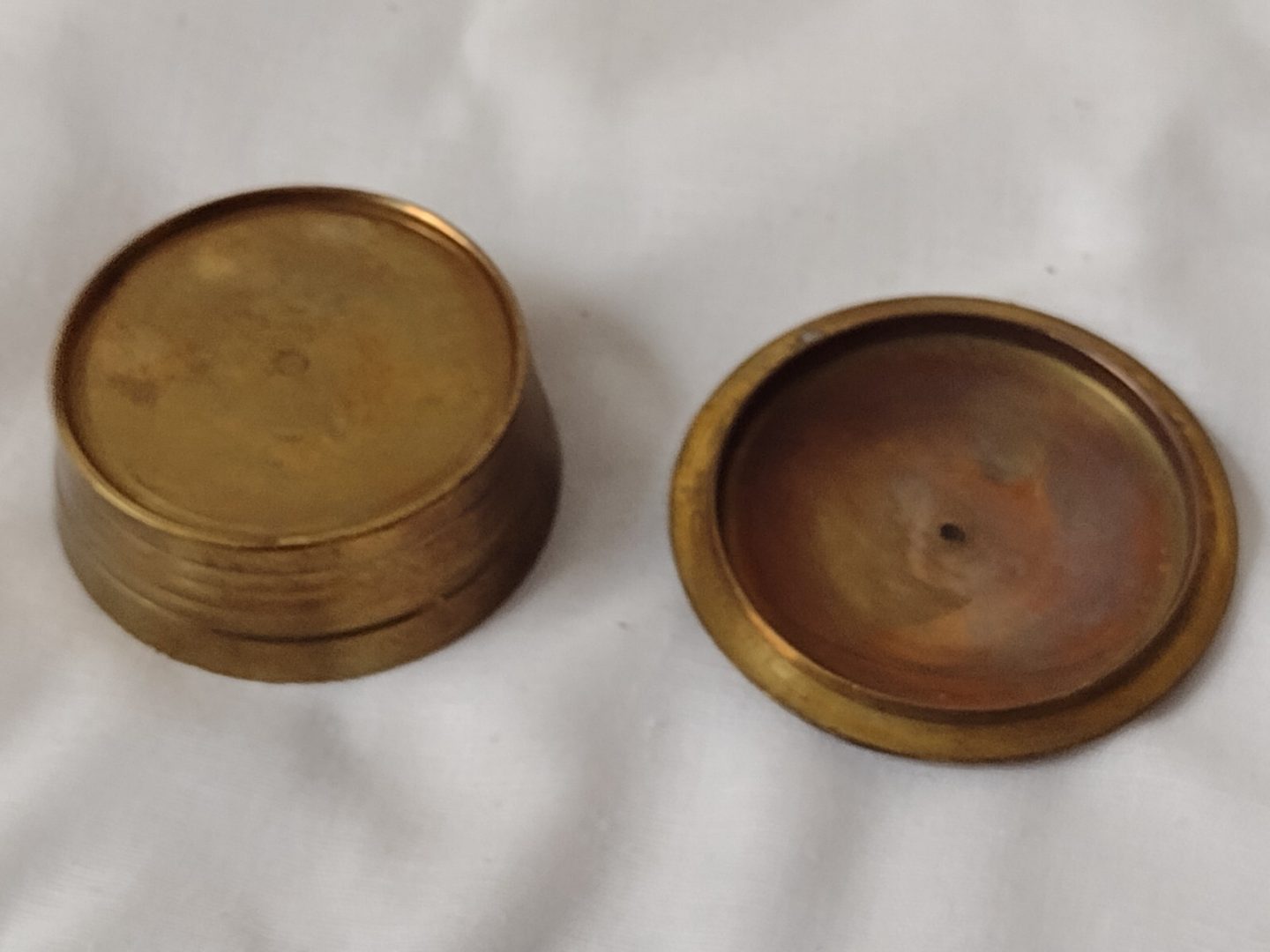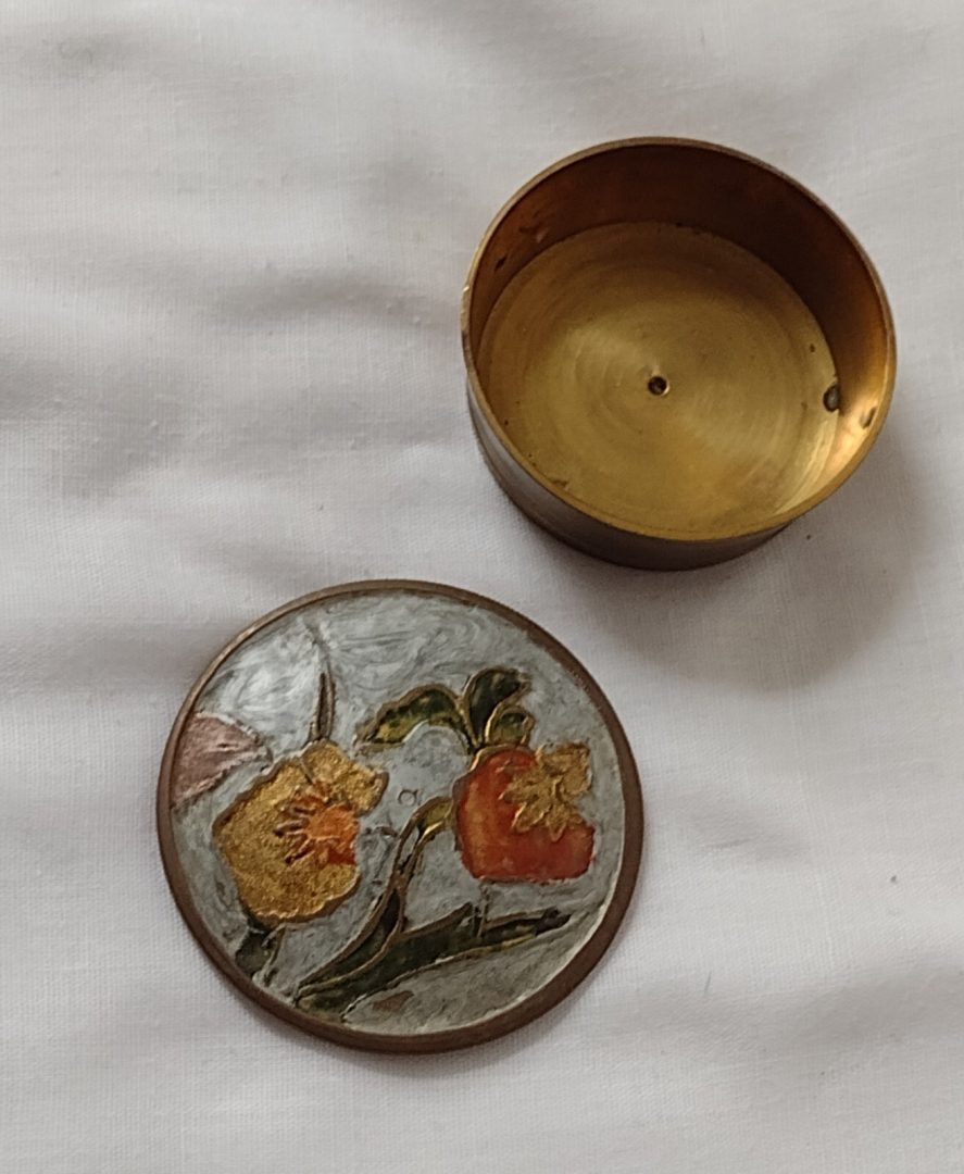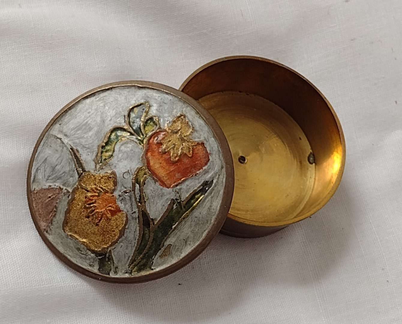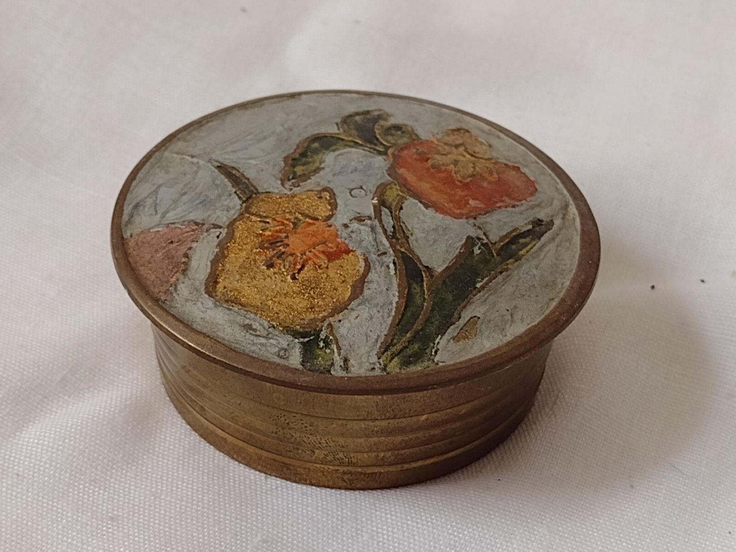 Trinket Bill or Pill Box Hand Painted on Solid Brass Trinket Box 6cm Vintage