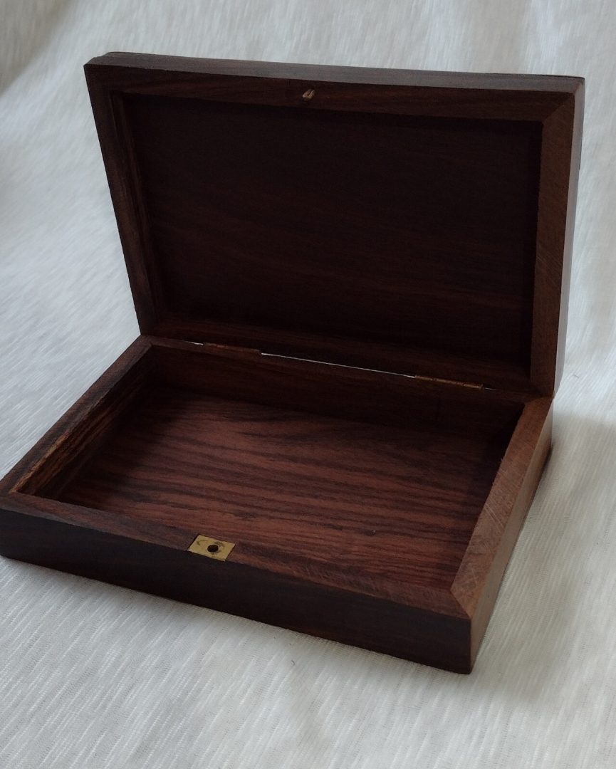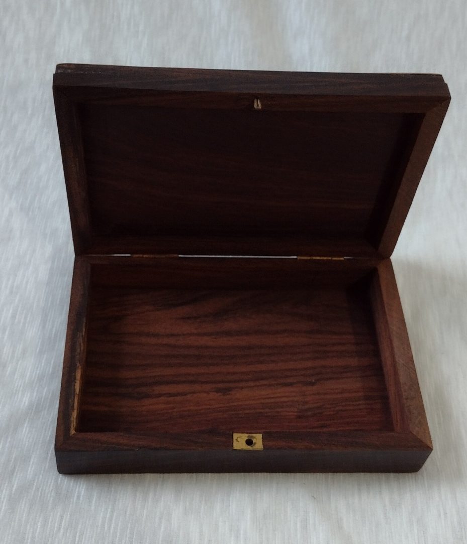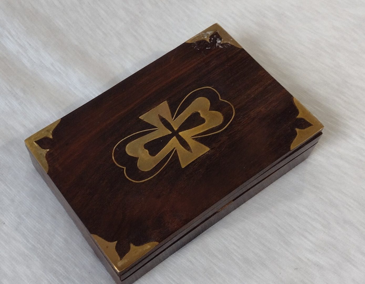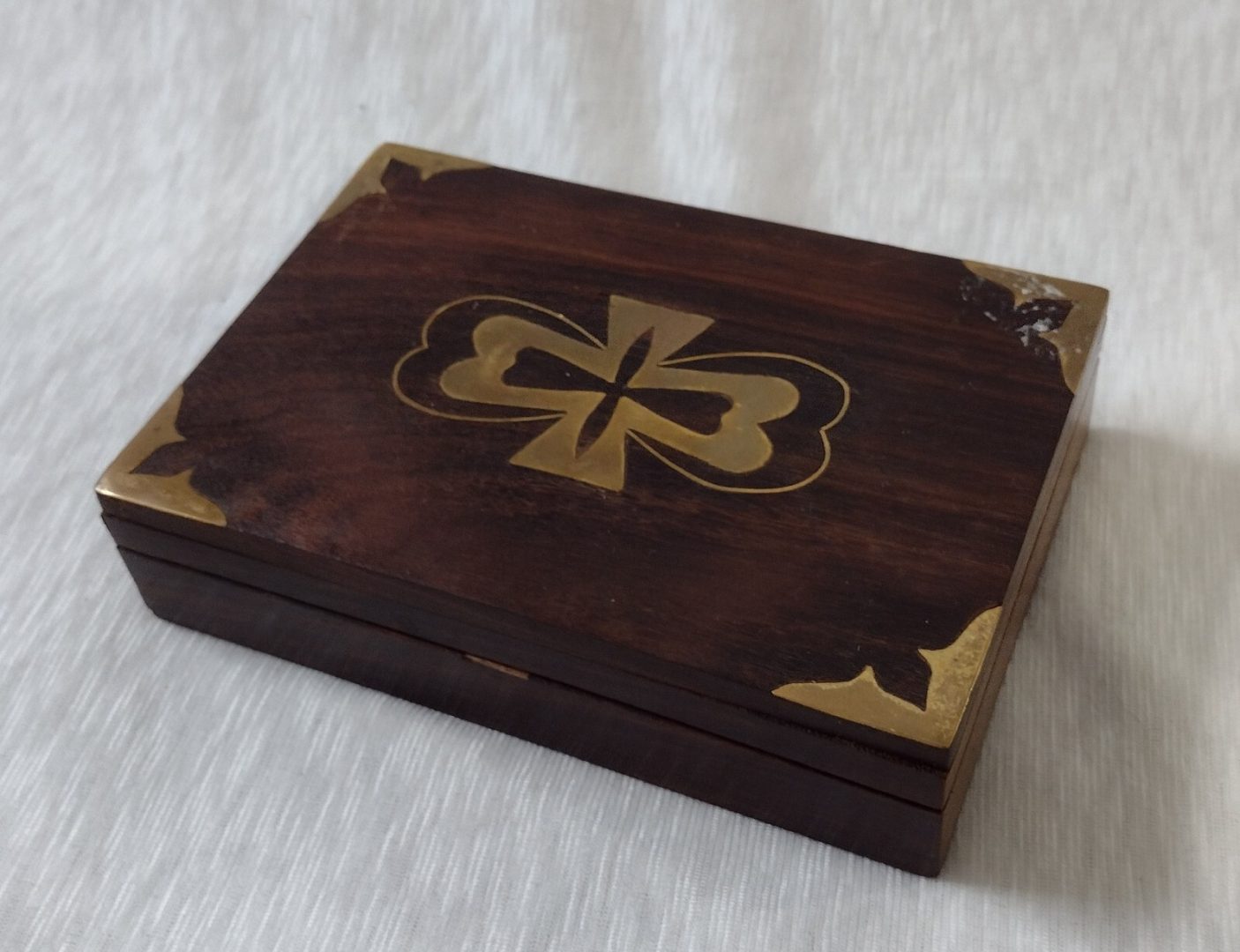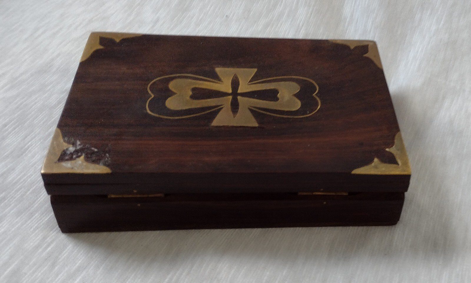 Trinket Box Hand Crafted Brass Inlay Wooden Art & Craft Jewellery Box 15cm Vinta