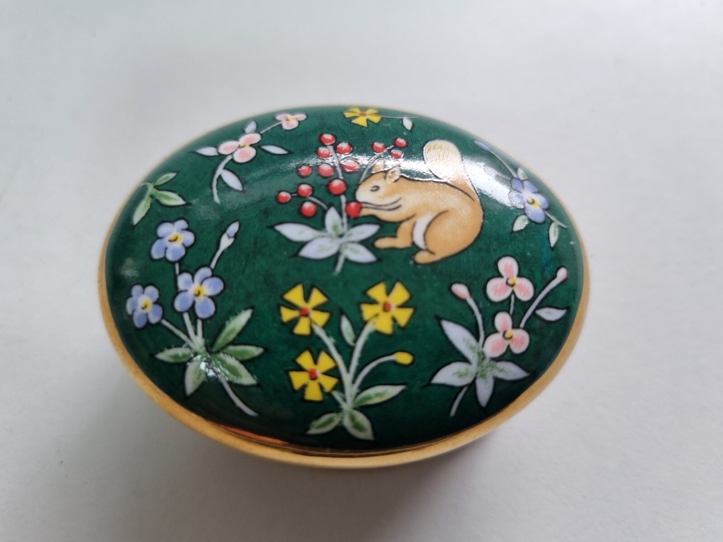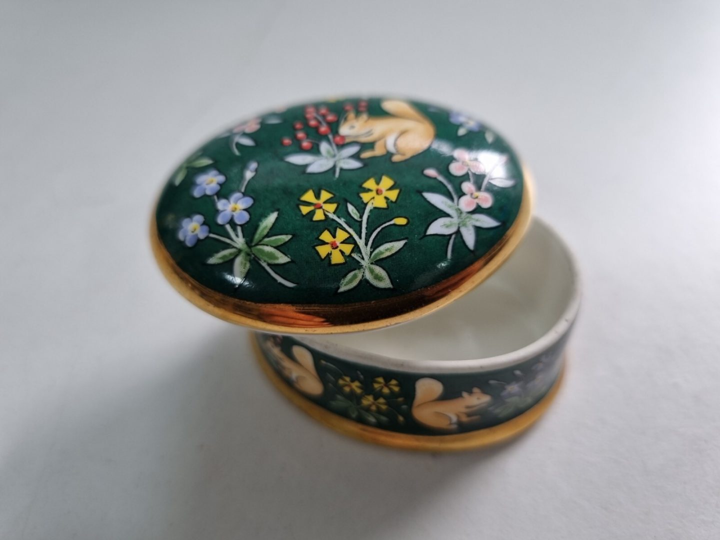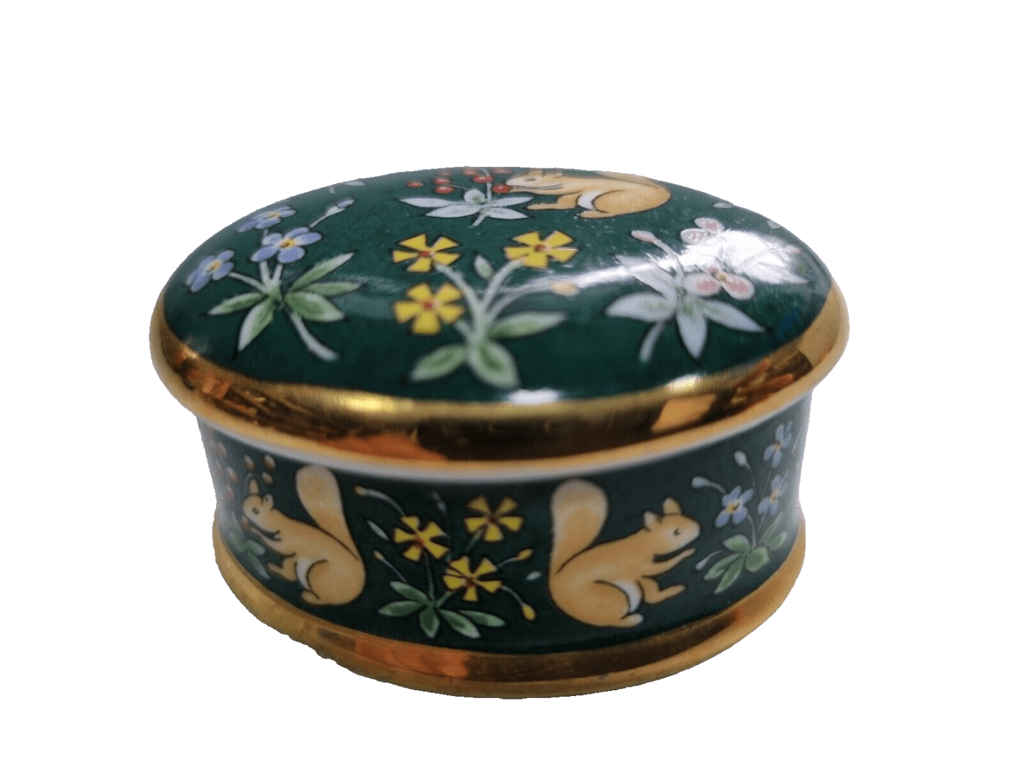 Be the first to review “Trinket Box Hand Painted Squirrel Mille Fleurs Fine Bone China Gold Tone Edge” Cancel reply