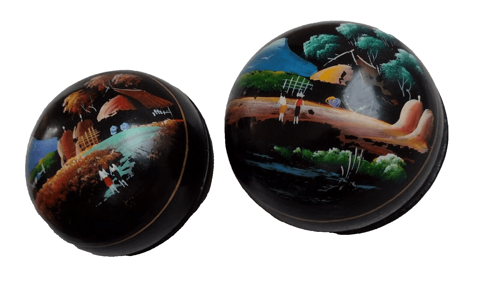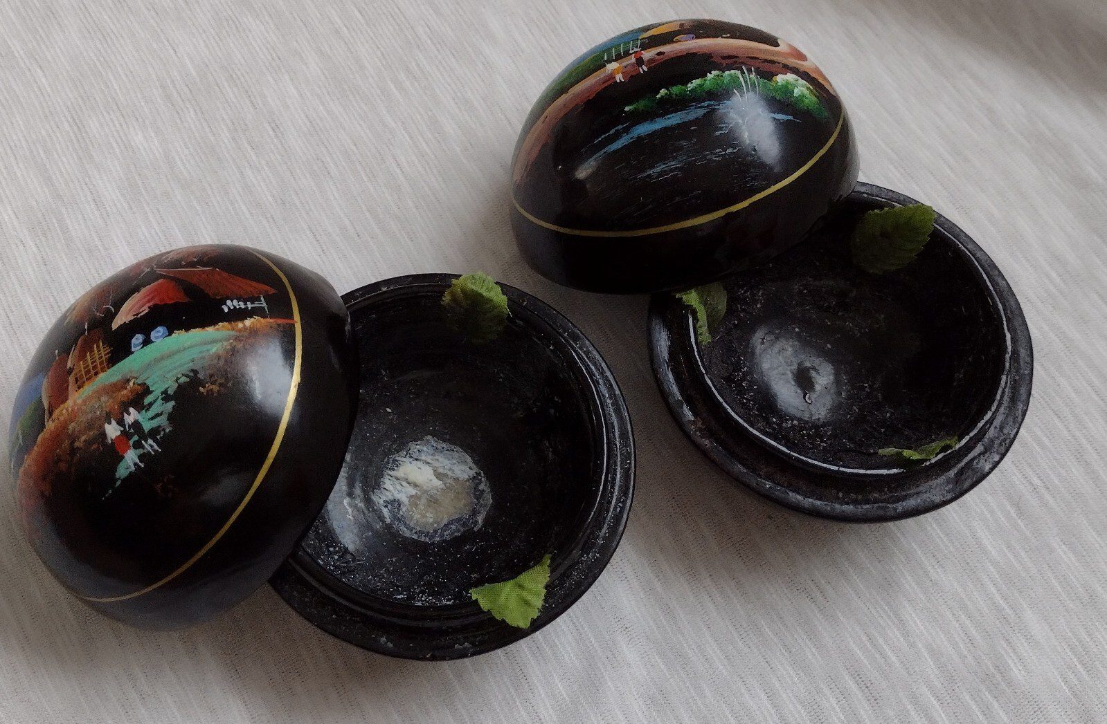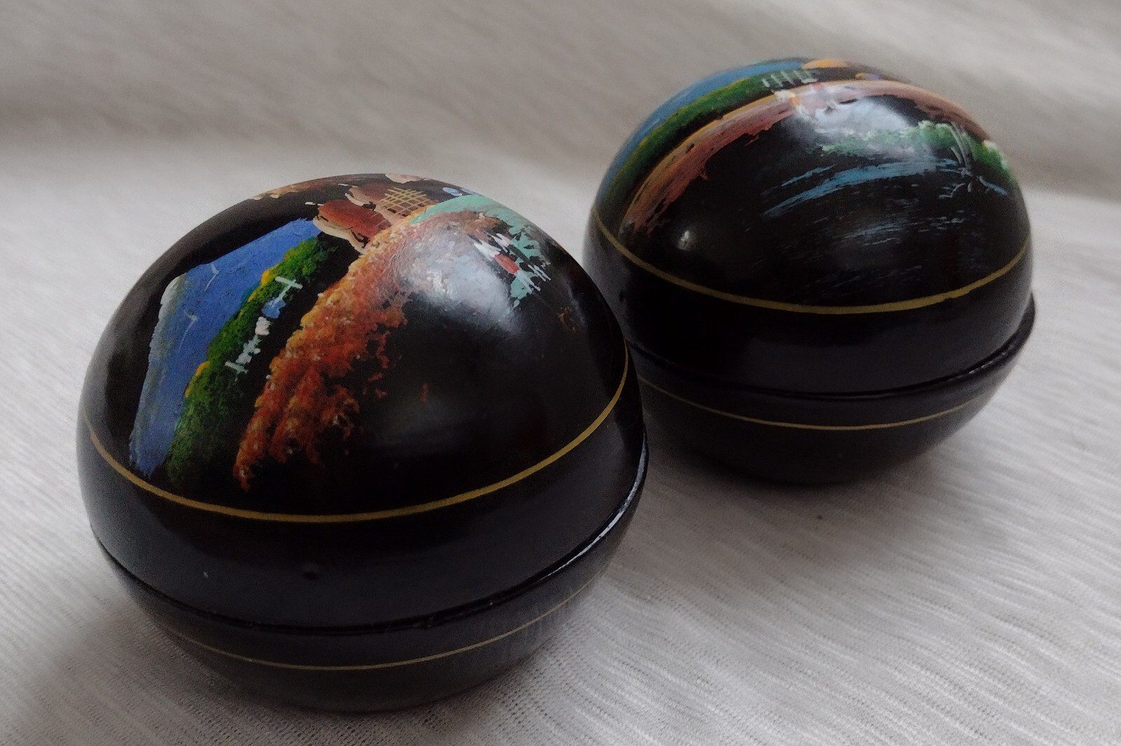 Trinket Box Hand Painted Thai Lacquerware Jewellery Box 7×7.5cm Vintage Pair