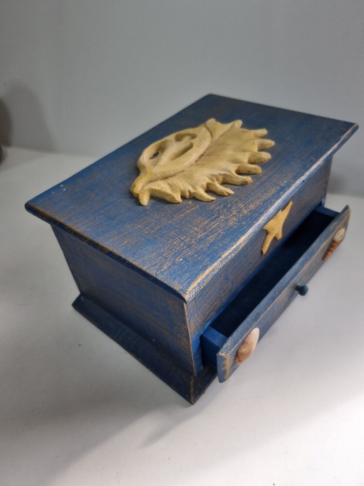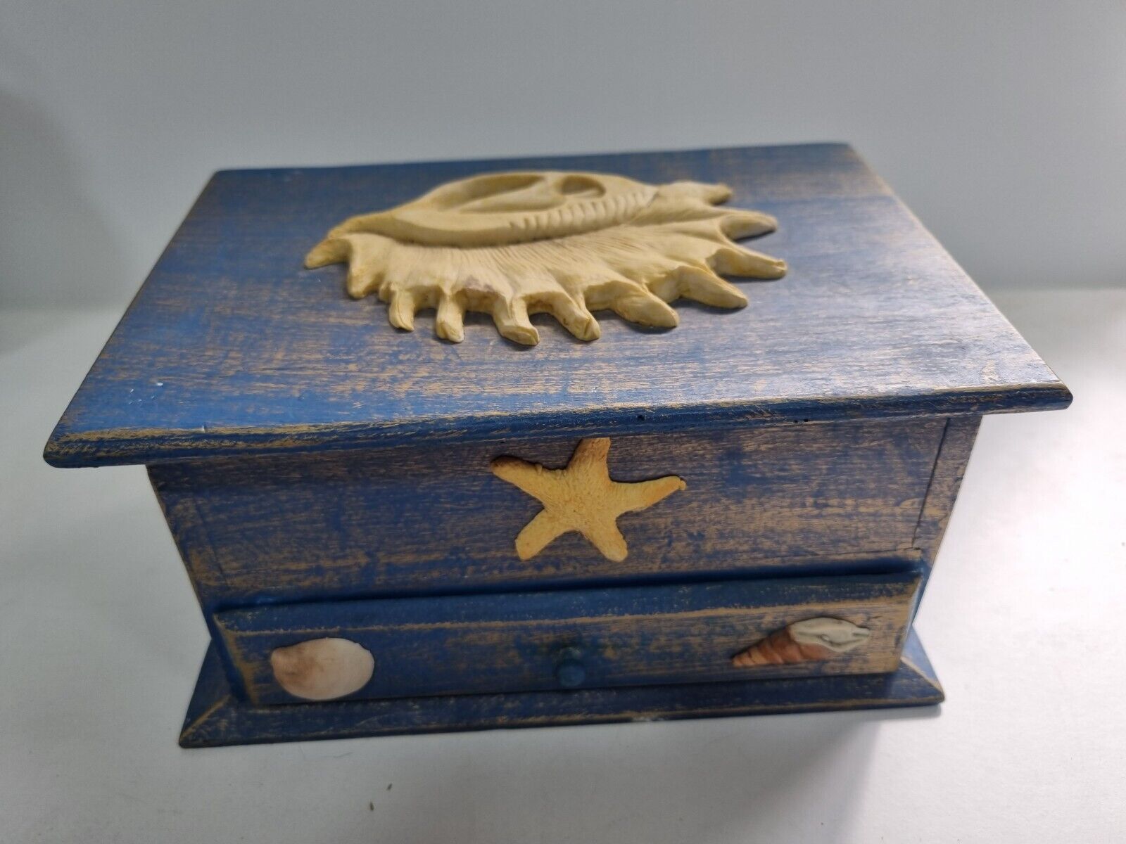 You are purchasing vintage & collectable Item. On offer for sale is a Handcrafted and hand painted Sea Shell Wooden Trinket / Jewellery Box, Size approximately 22.5 cm x 15.5 cm This item remains in very good condition but showing genuine signs of age. Please study pictures carefully to decide