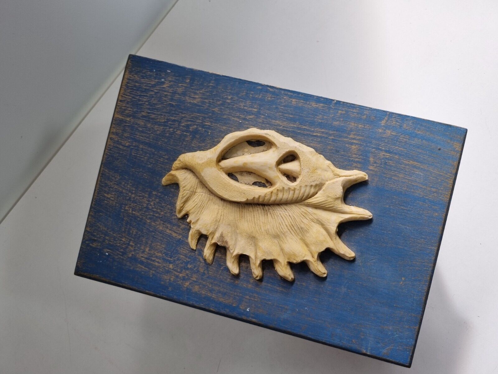 Trinket Box Handcrafted Sea Shell Wooden Jewellery Box 22.5 cm x 15.5 cm Rare