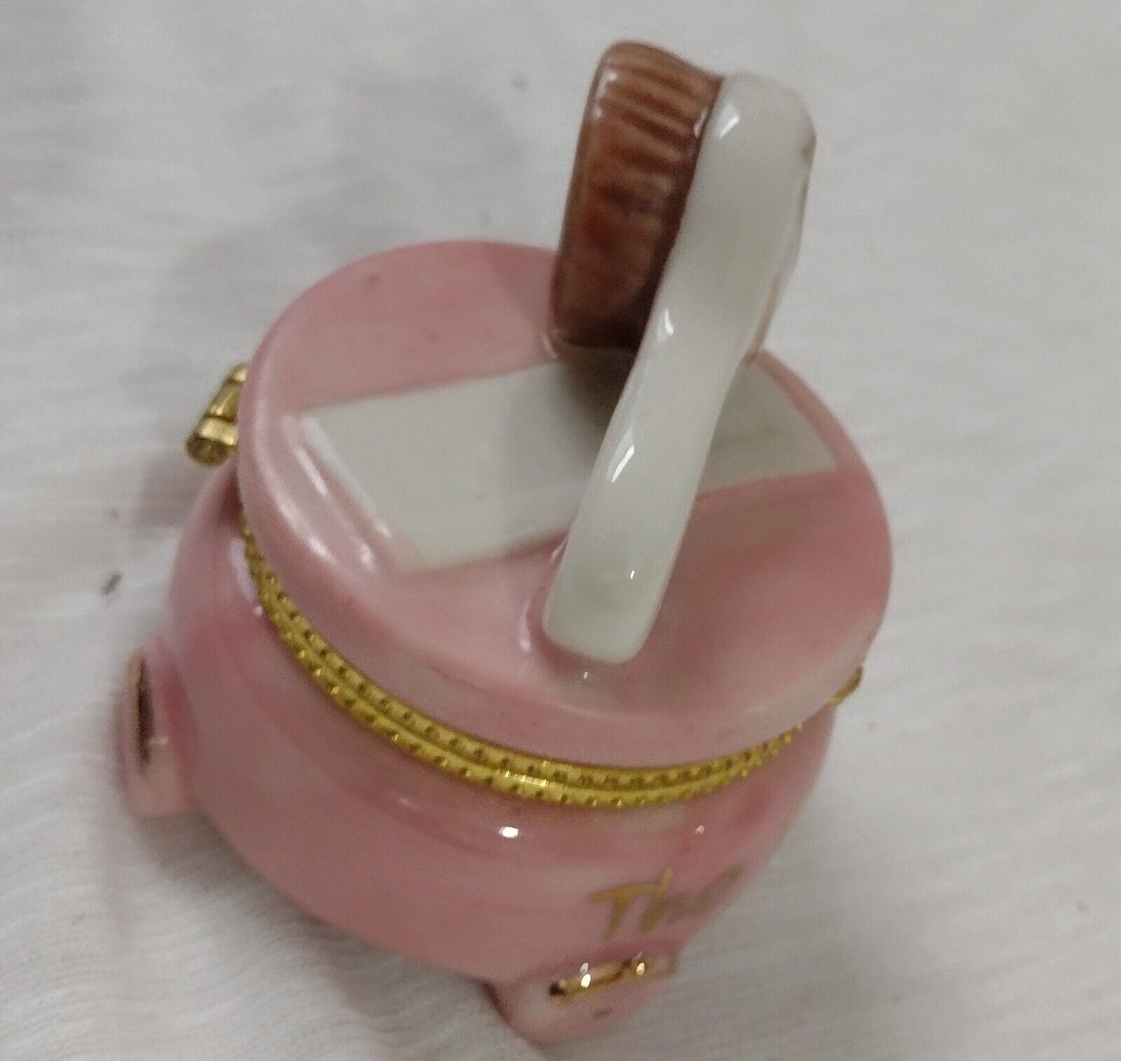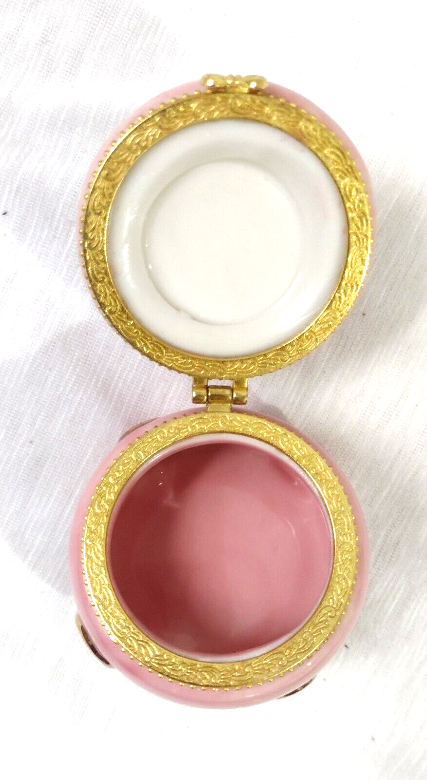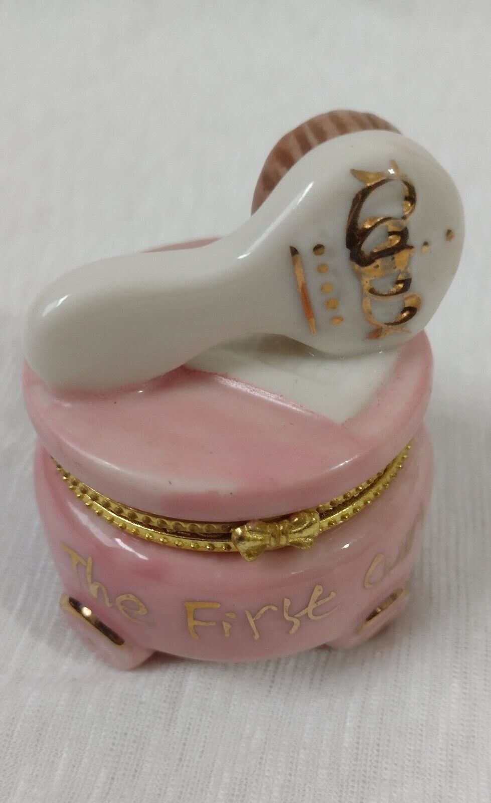 Trinket Box The First Curl and Comb 3D Gold Tone Edge on Pink Trinket Box
