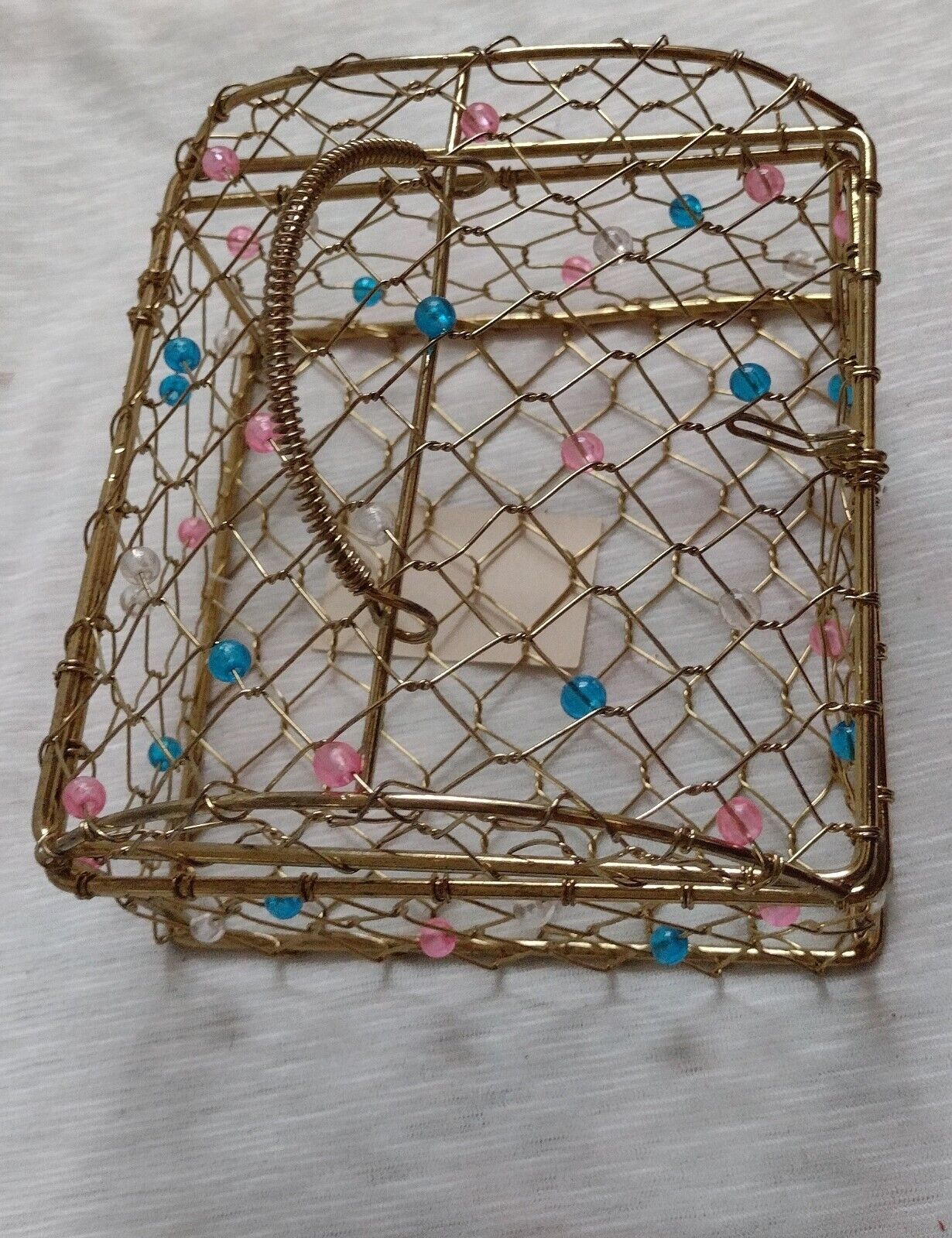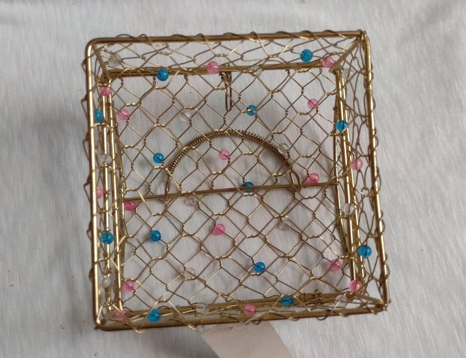 Trinket Box Twisted Wire Multicolor Beads Box Handmade Box Brass 8cmx12cm New