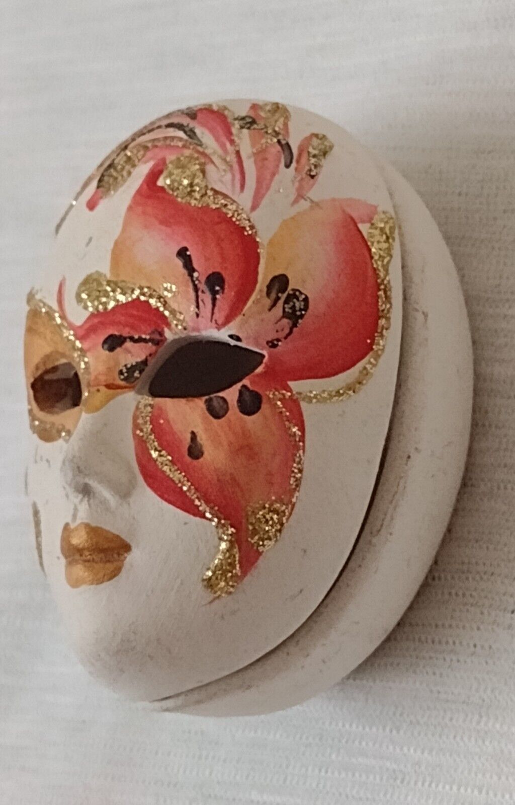 Trinket Box Venetian Style Gypsum Mask Hand Painted Trinket Box 3cmx5cm Vintage