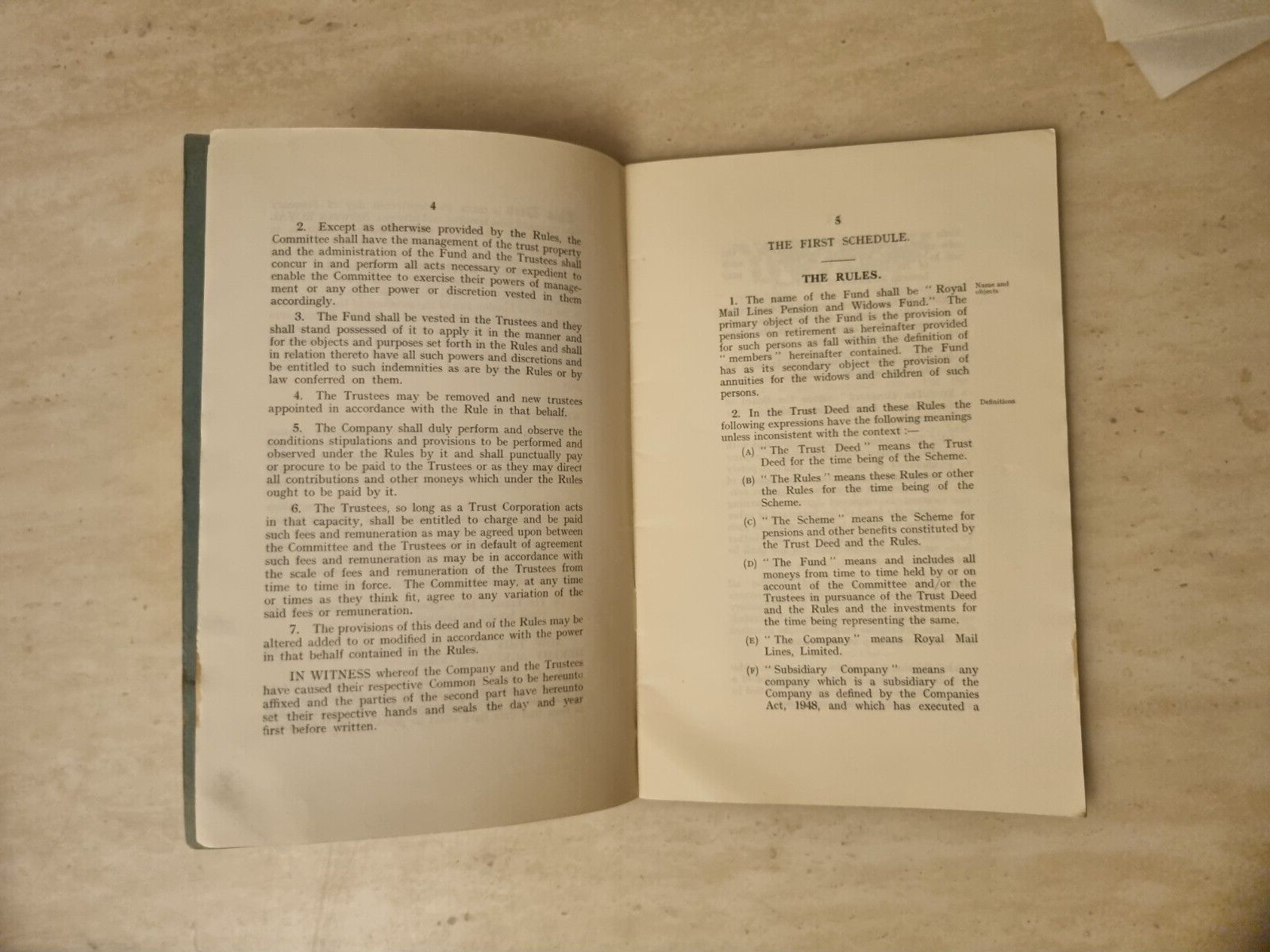 Trust Deed and Rules Royal Mail Lines Pension And Widows Fund