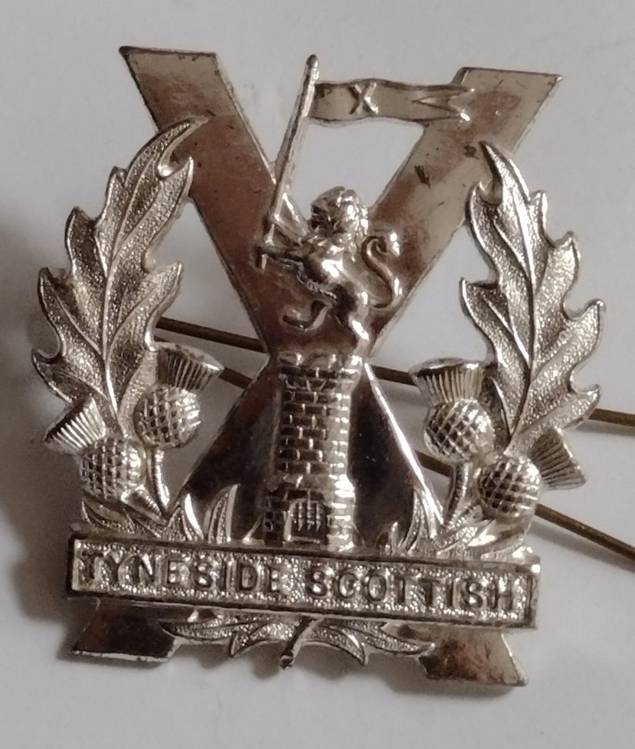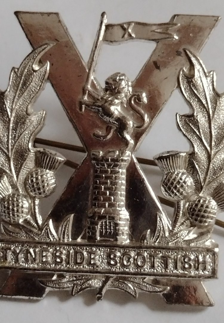 Tyneside Scottish (Territorial Army) Officer’s Cap Badge Silver Plate Vintage