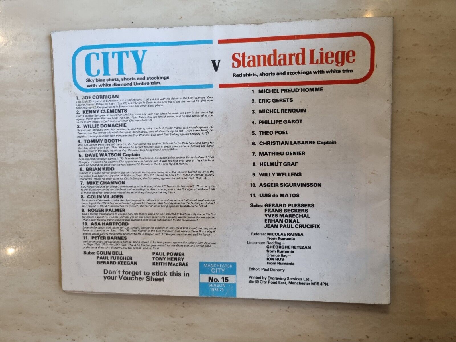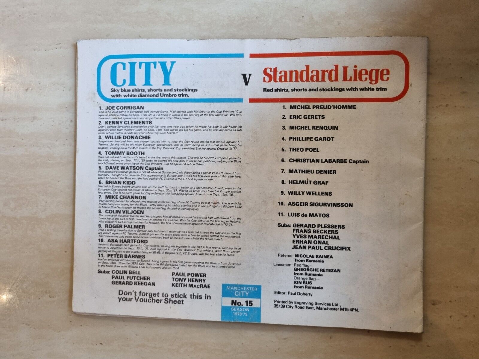UEFA Cup Manchester City v Standard Liege 18th October 1978