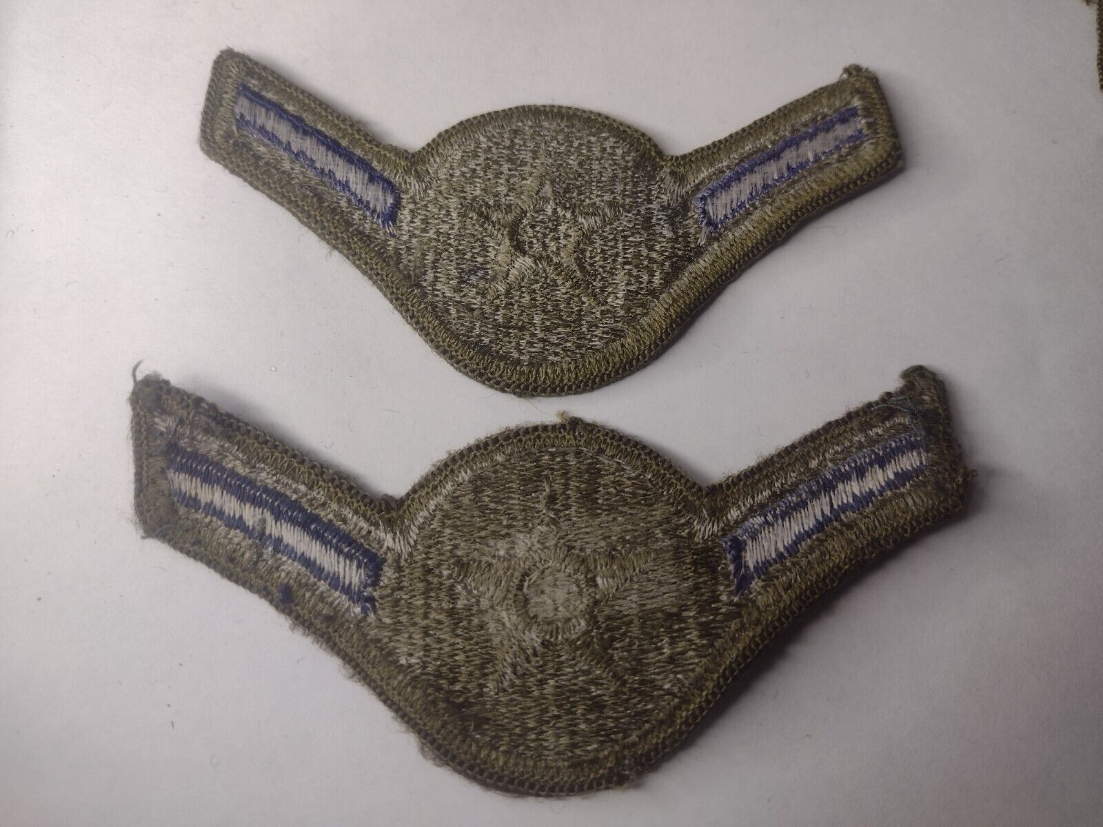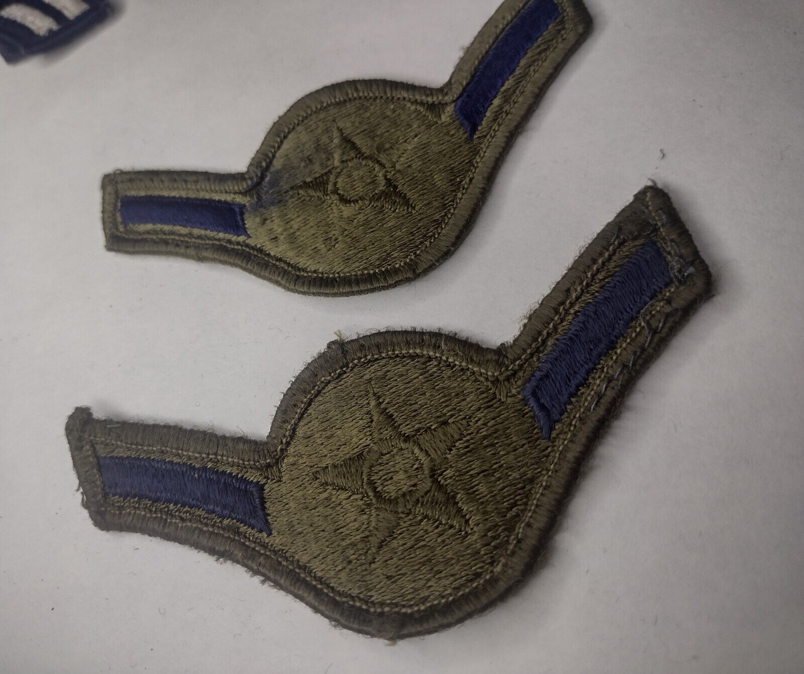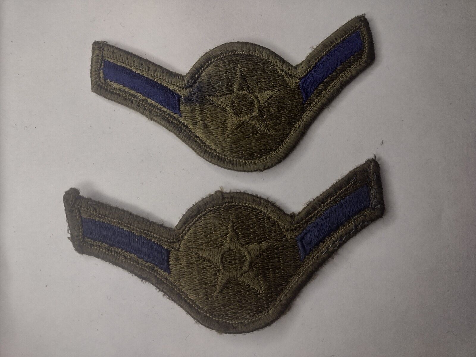 US Air Force Airman Subdued Rank Chevron Patch Navy on Olive Used – Pair