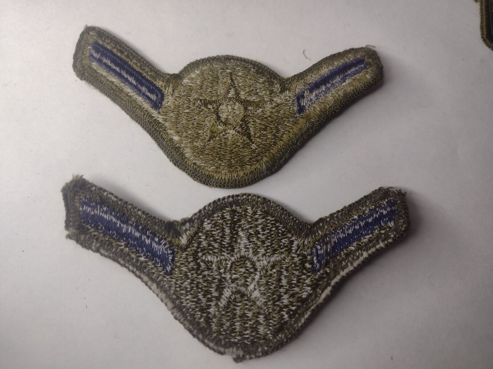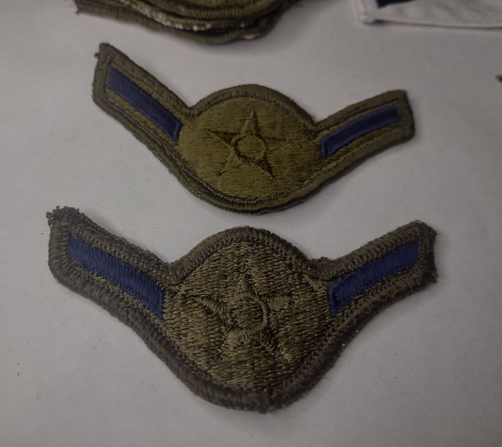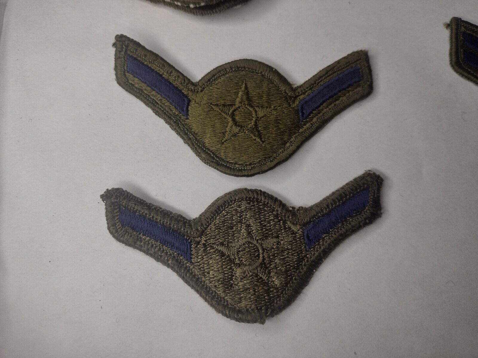US Air Force Airman Subdued Rank Chevron Patch Navy on Olive Used – Pair