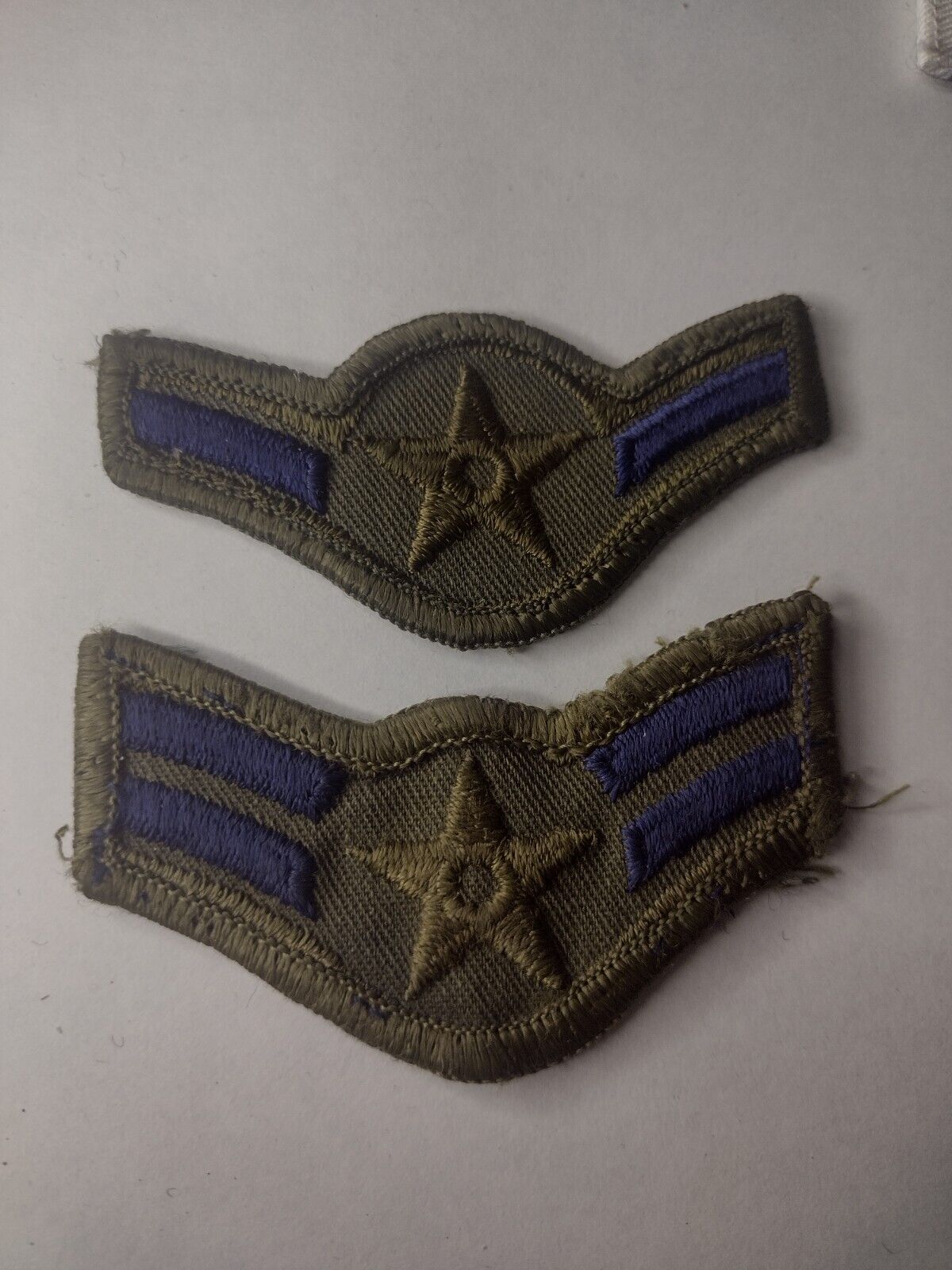 US Air Force Rank & USAF Airman 1st Class Qualification Patch Navy on Olive-Used