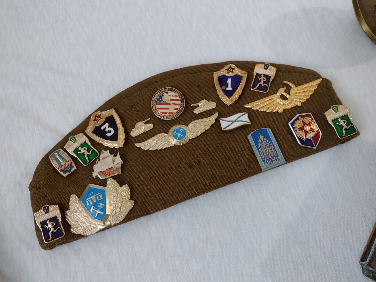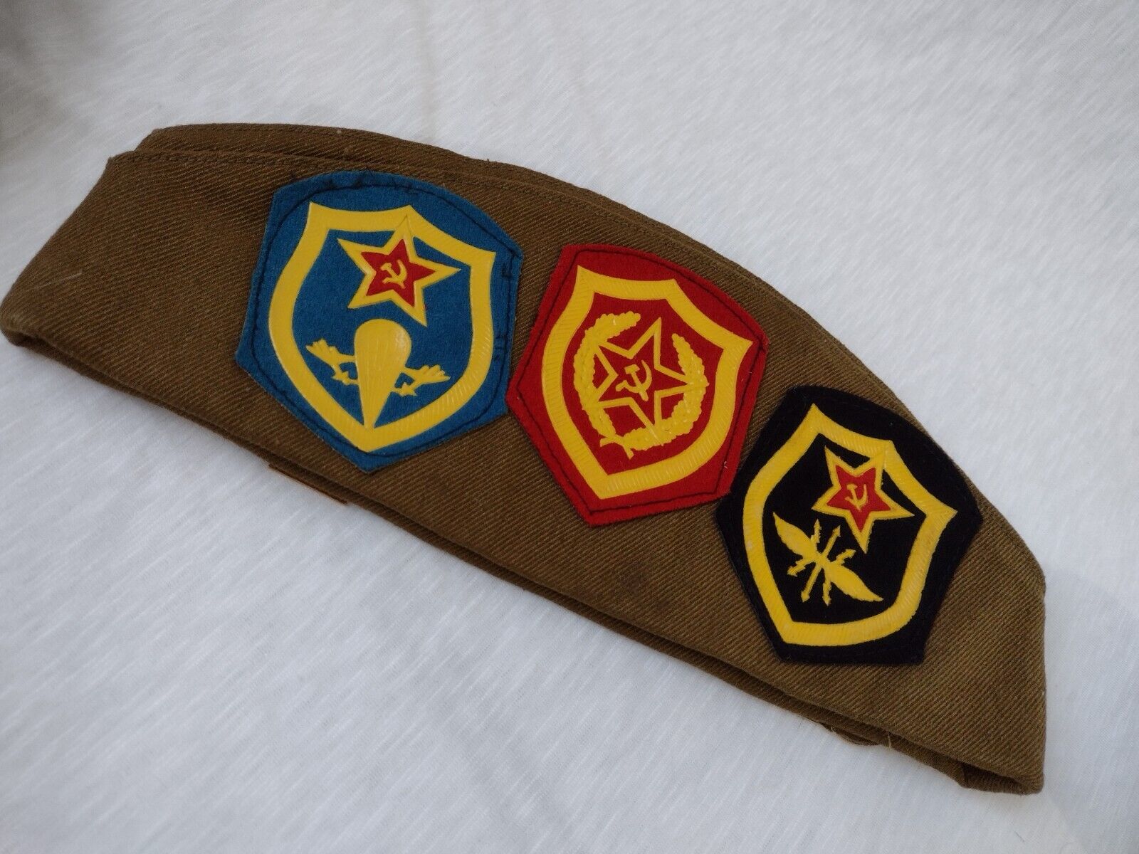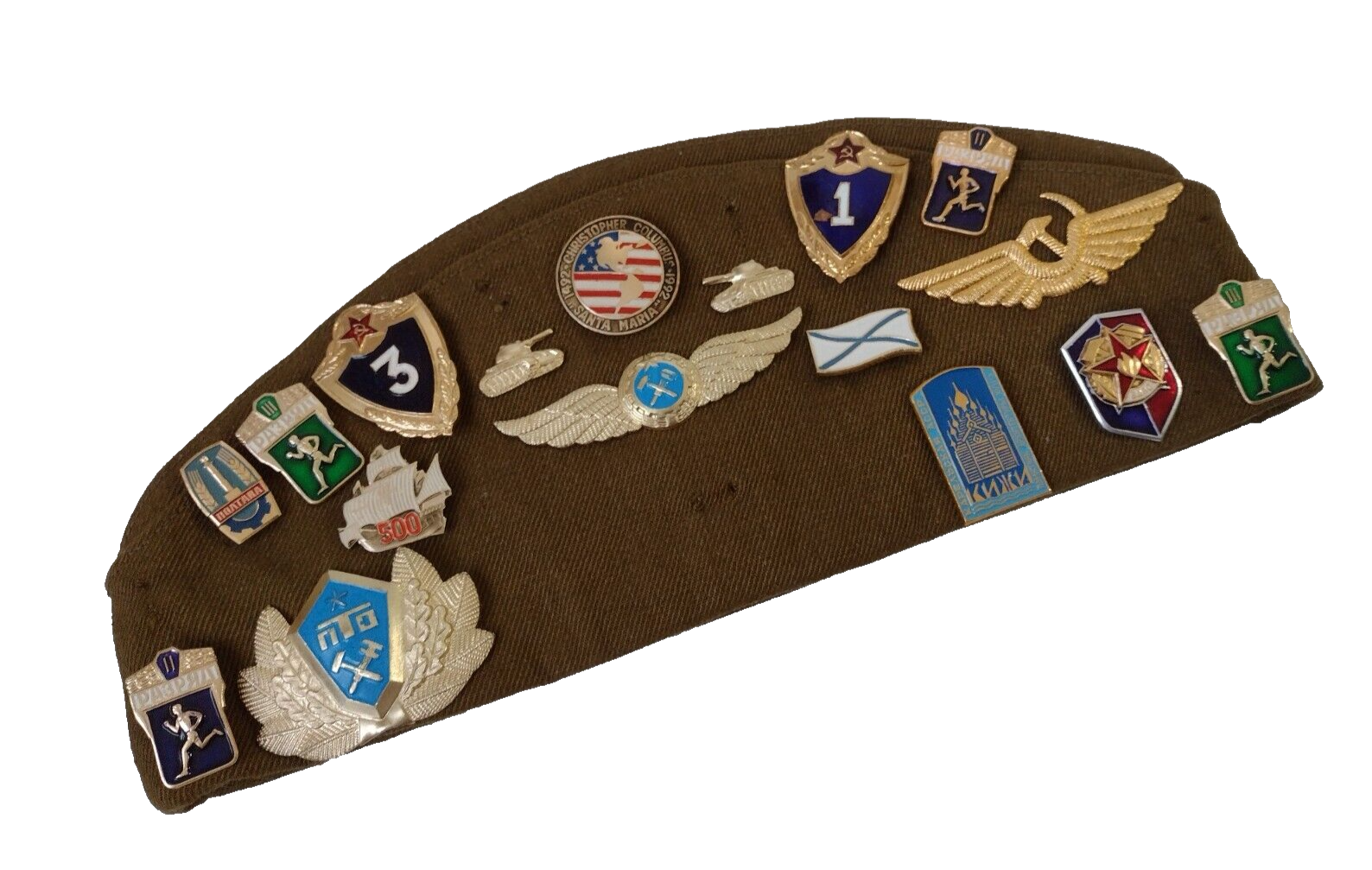 USSR Russian Soviet Union Army Cap and Badges 17 Pin Badge & 3 Patch Vintage Org