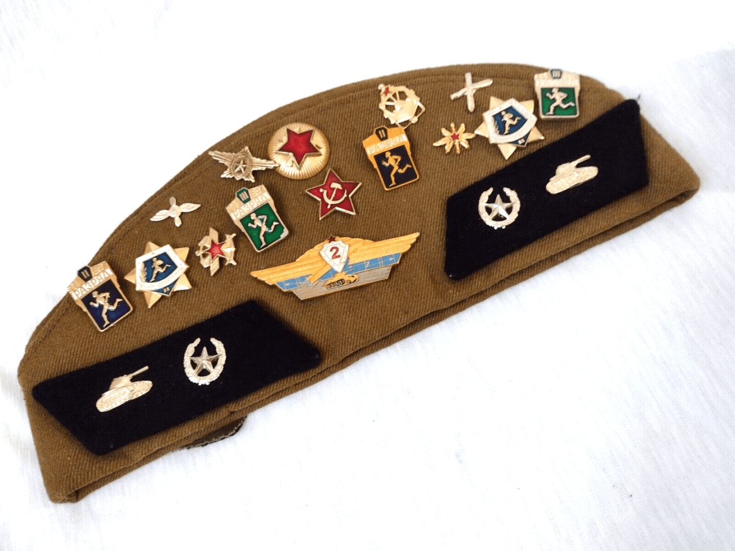 USSR Russian Soviet Union Army Cap and Badges 20 Pin Badge & 5 Patch Vintage Org