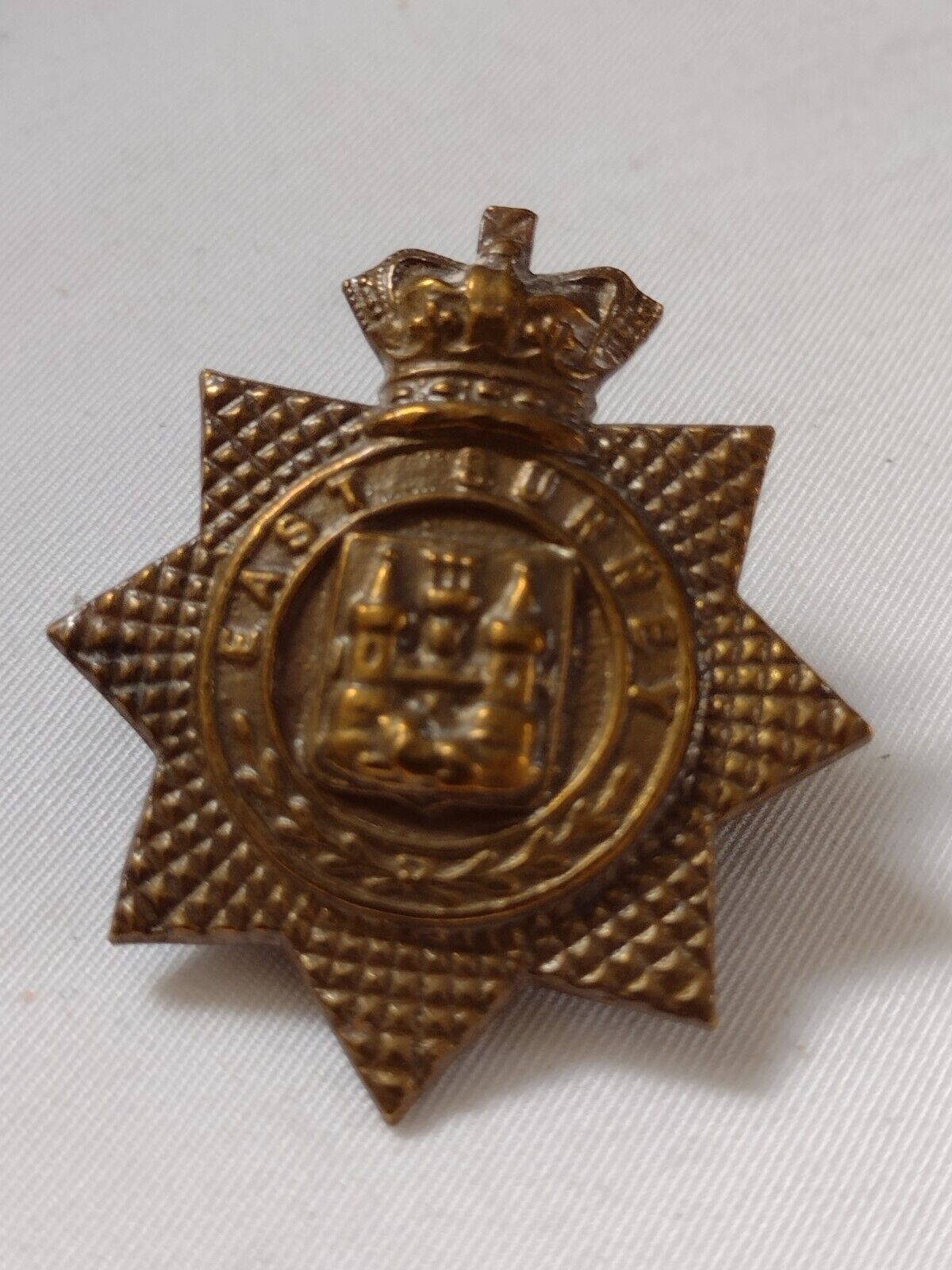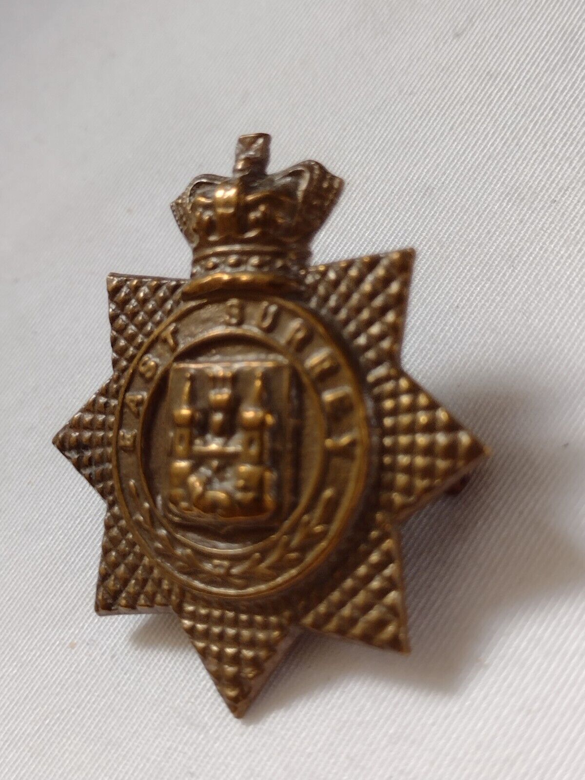 Victoria East Surrey Regiment Cap Badge QVC All Brass 2Lugs 44mm Antique Org