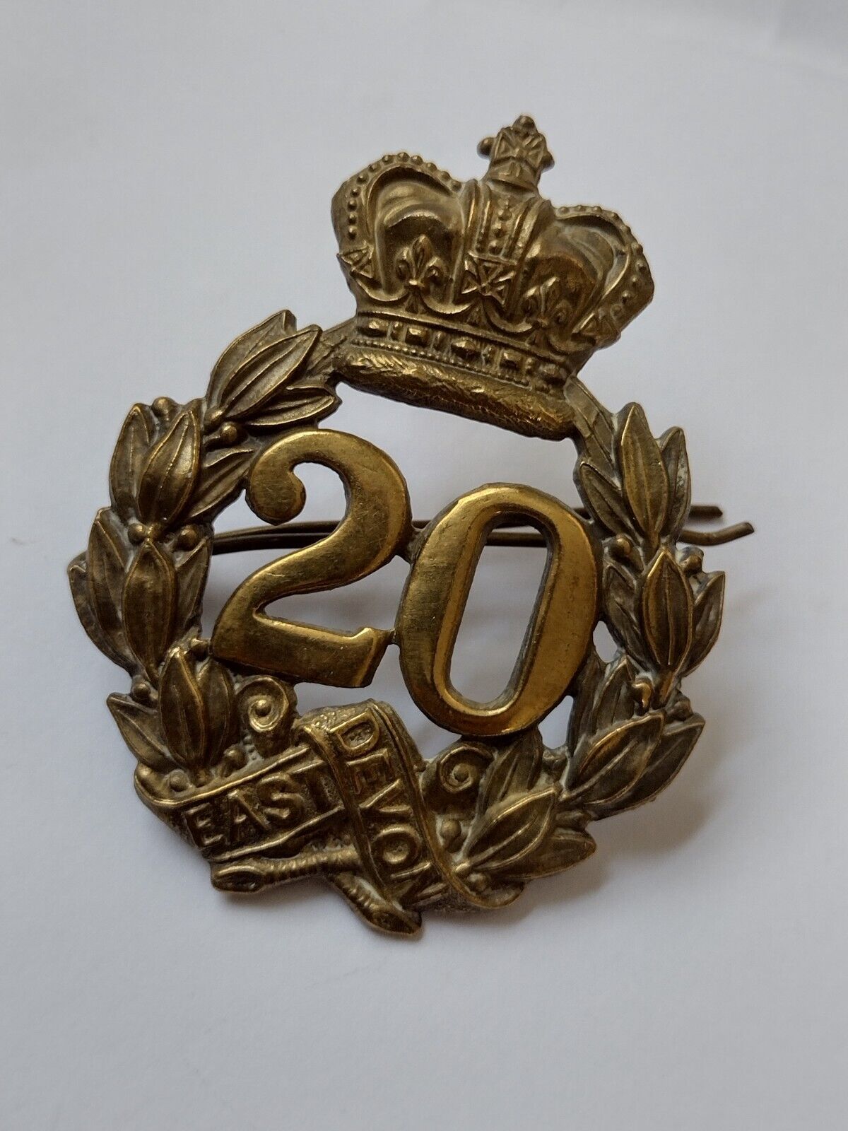Victorian 20th East Devon Regiment of Foot Glengarry Cap Badge Brass Antique Org