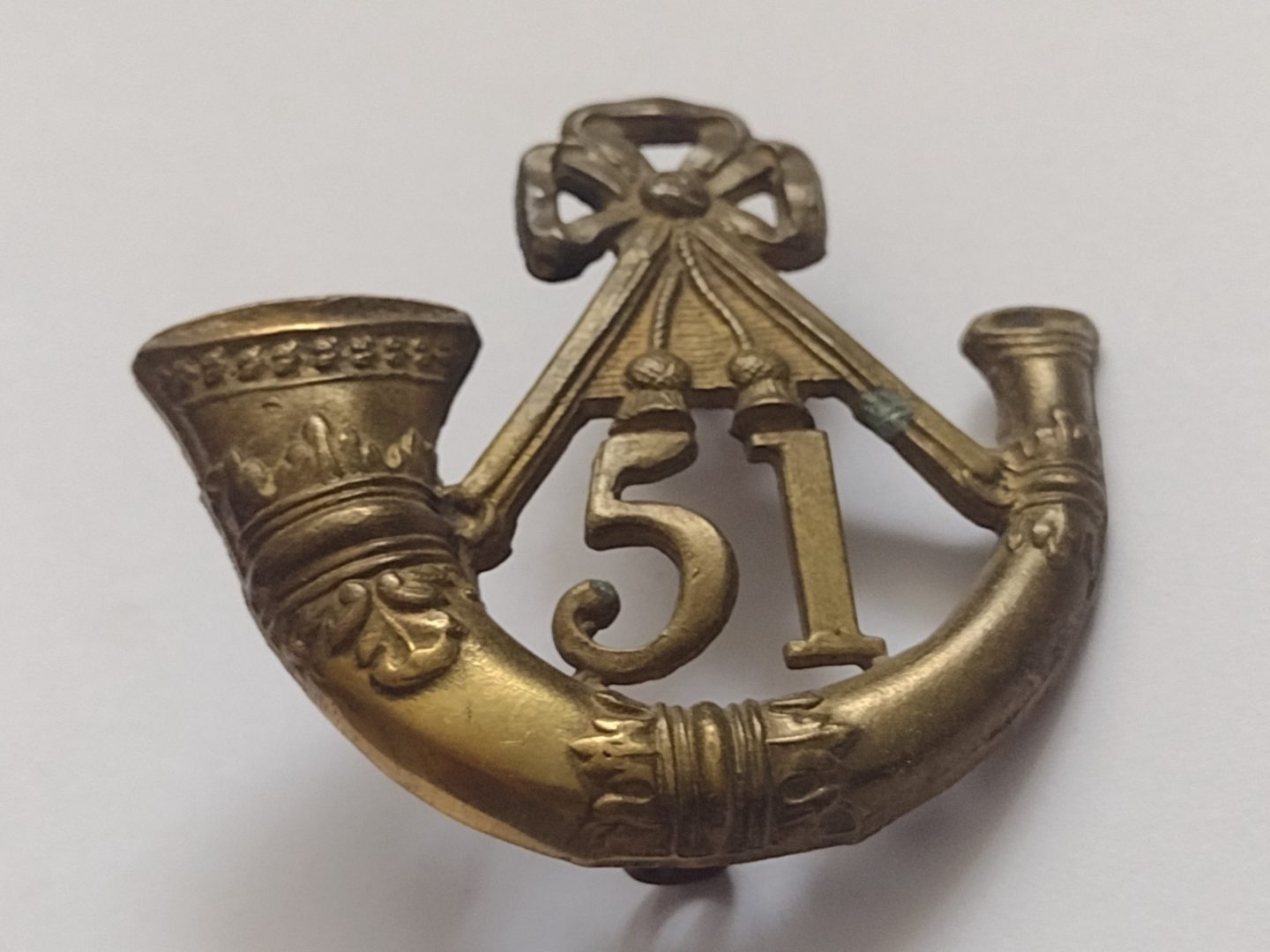 Victorian 51st King’s Own Light Infantry Glengarry Cap Badge Antique Original