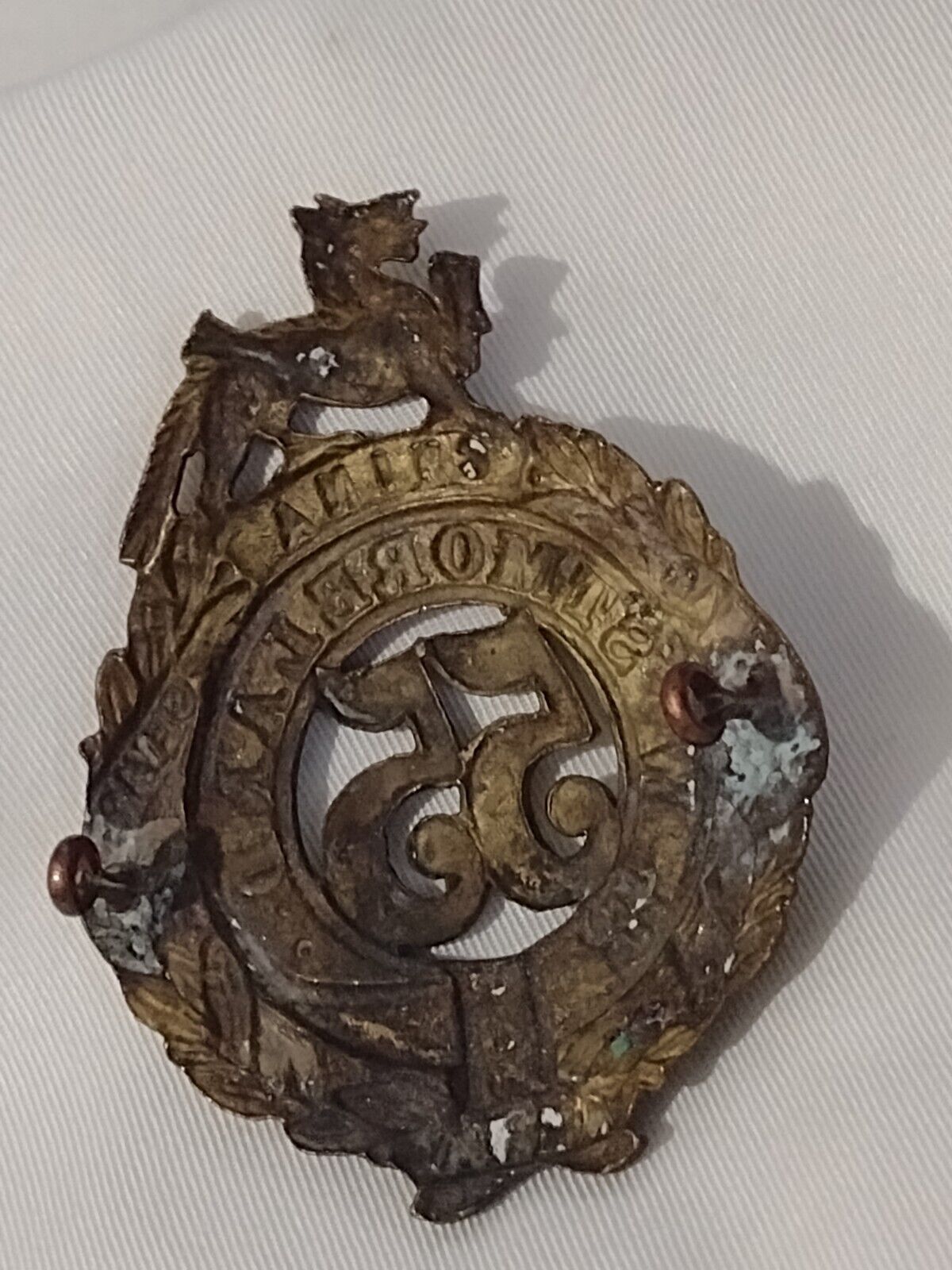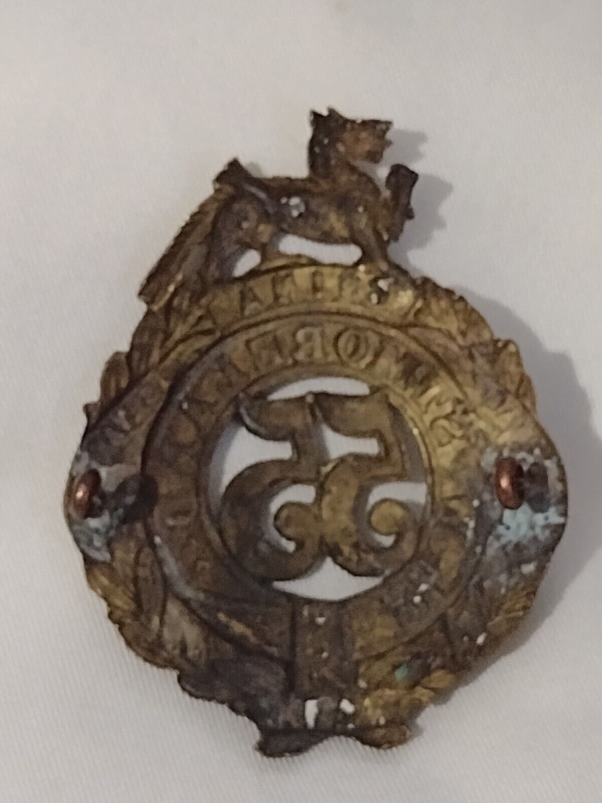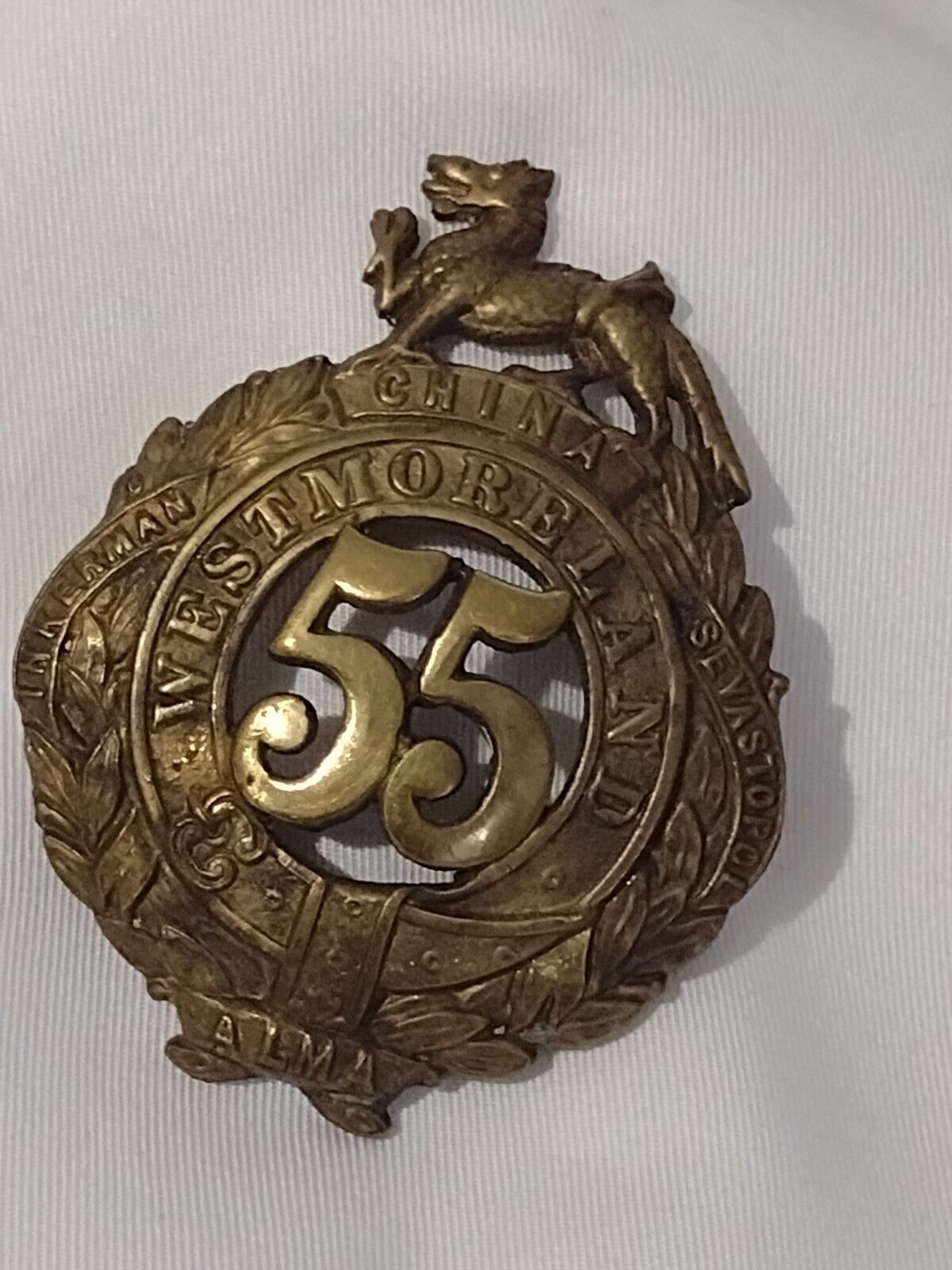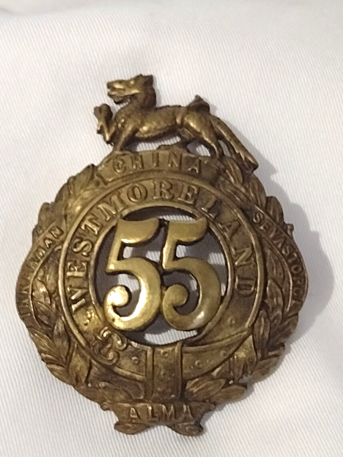 Victorian 55th Westmoreland Regiment Glengarry Cap Badge QVC Brass 2Lugs Antique