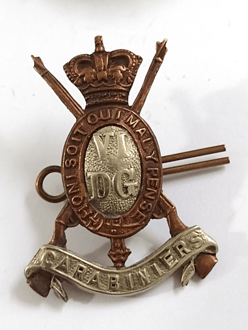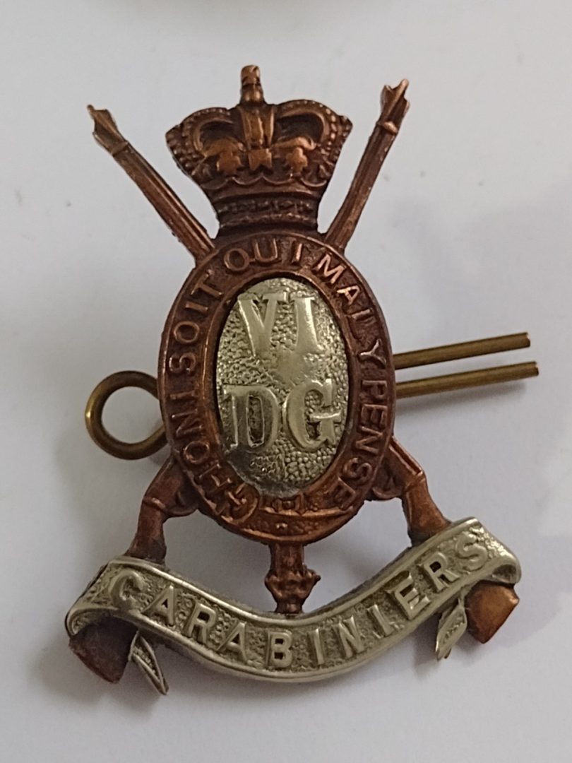 Victorian 6th Dragoon Guards (Carabiniers) Cap Badge QVC Bi-Metal – Original