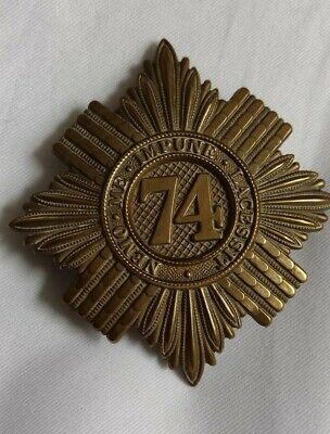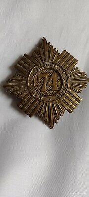 VICTORIAN 74th Highland Light Infantry Glengarry Cap Badge Brass 2 Lugs ANTIQUE