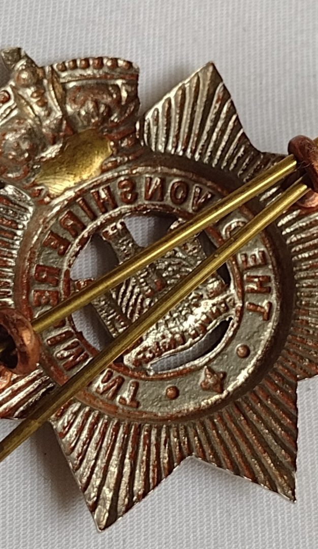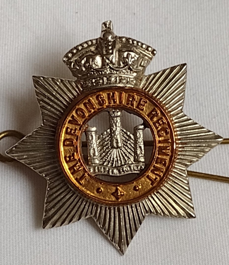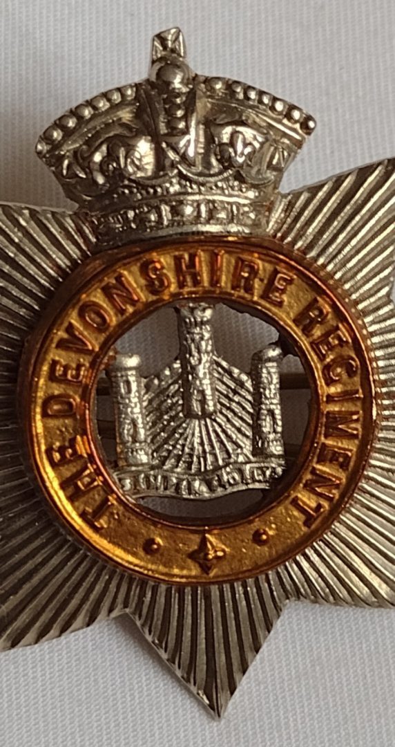 Victorian Devonshire Regiment Original Cap Badge QVC Bi-metal 2lugs Antique
