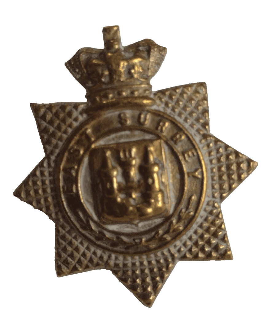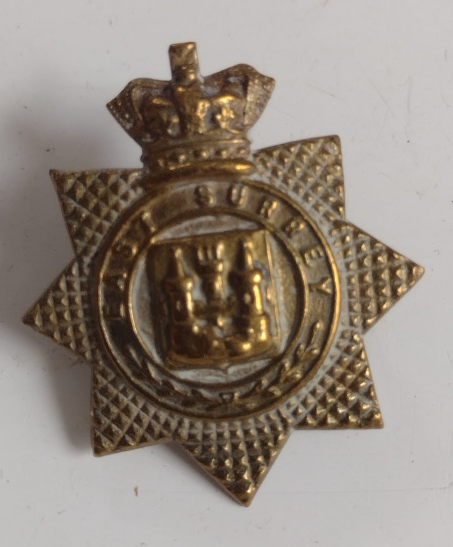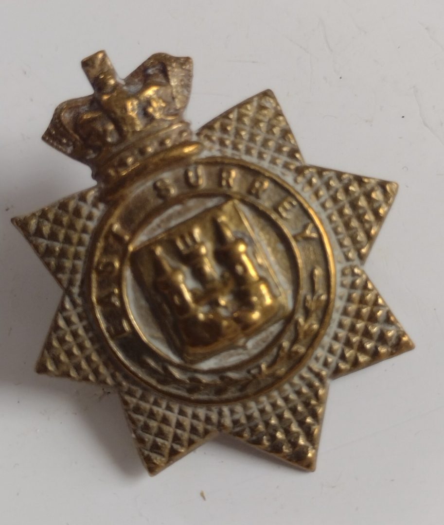Victorian East Surrey Regiment Cap Badge QVC Brass Economy 2Lug Antique Original