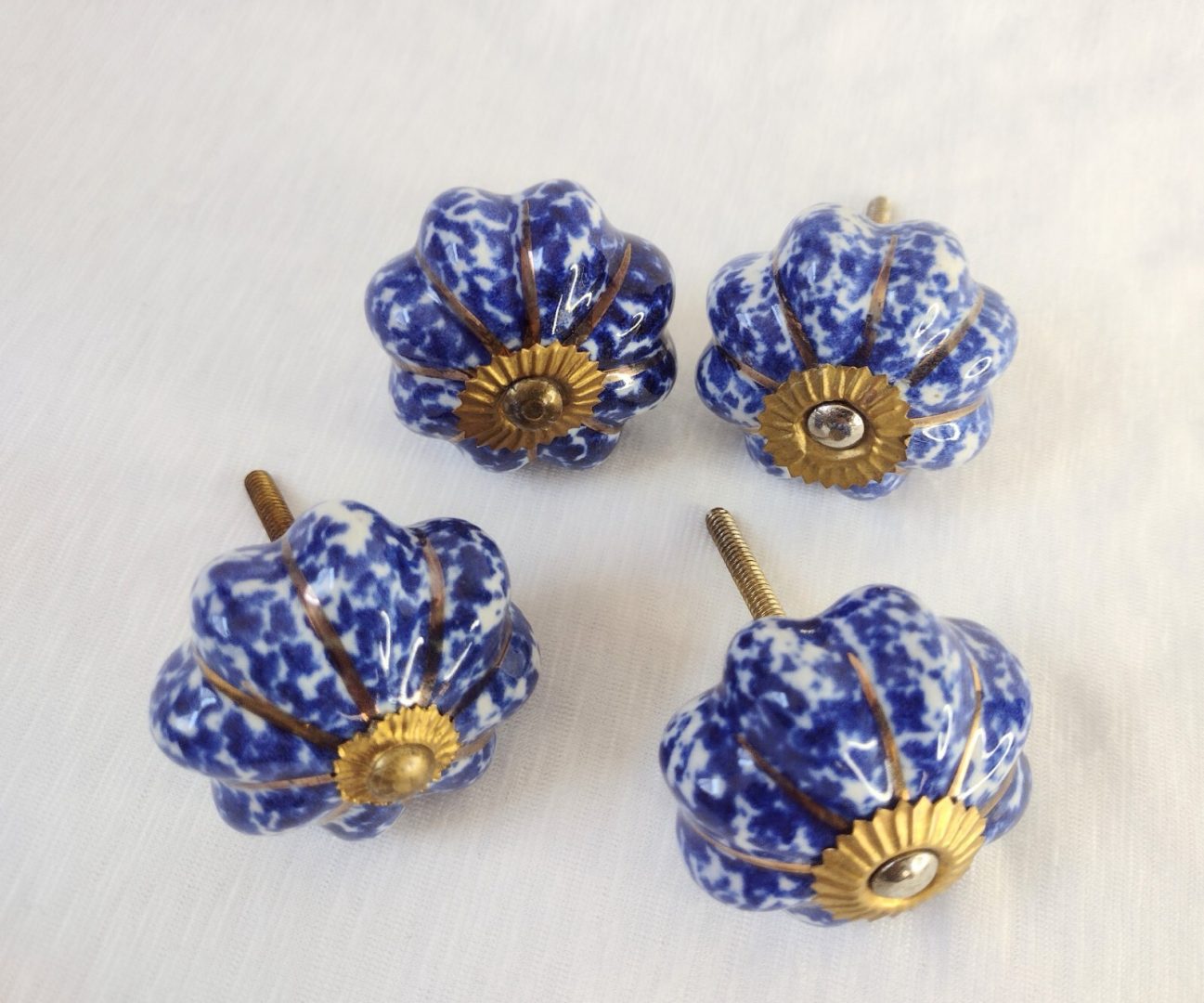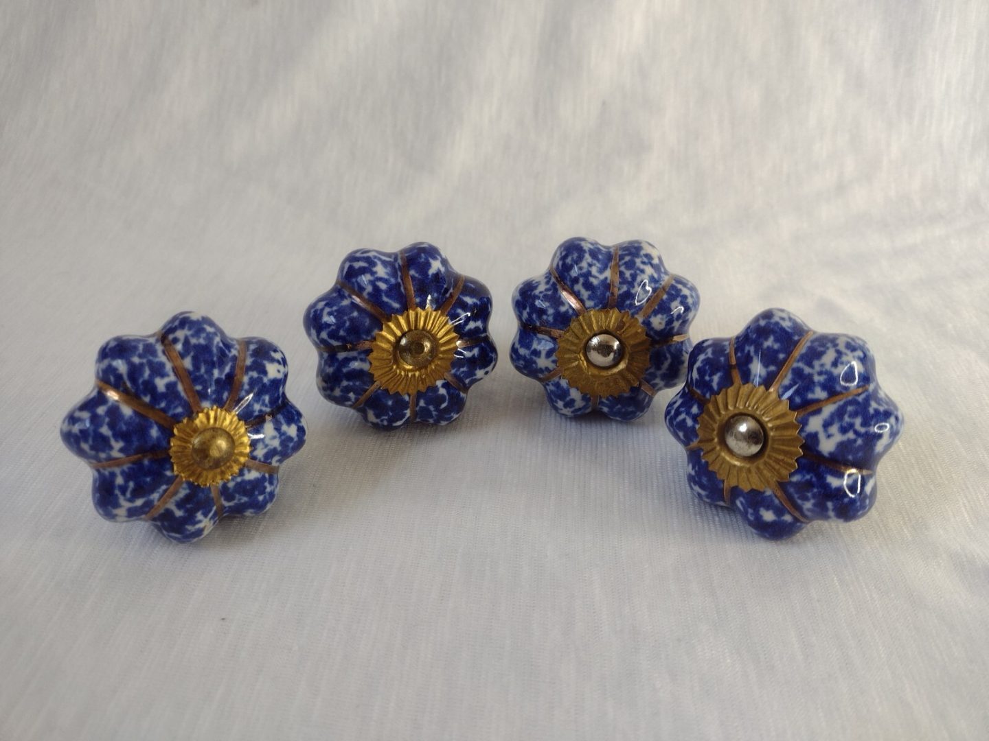 Victorian Era Ceramic Door Knobs Ceramic & Brass Dia 15cm Set of 4 Antique Rare