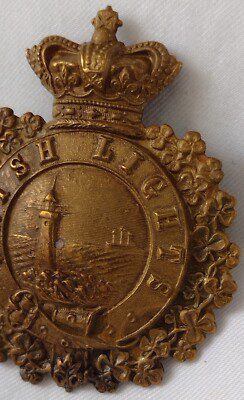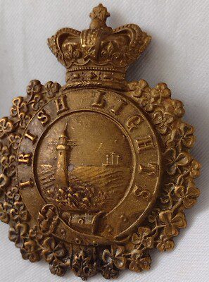 VICTORIAN Irish Lights Cap Badge QVC Brass 2 Lugs ANTIQUE Original