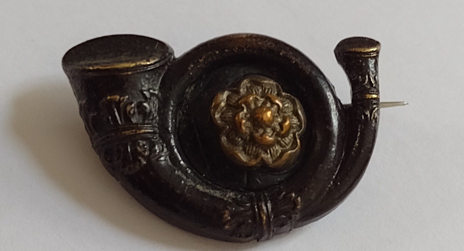 VICTORIAN King’s Own Yorkshire Light Infantry BROOCH Badge Blackened ANTIQUE Org