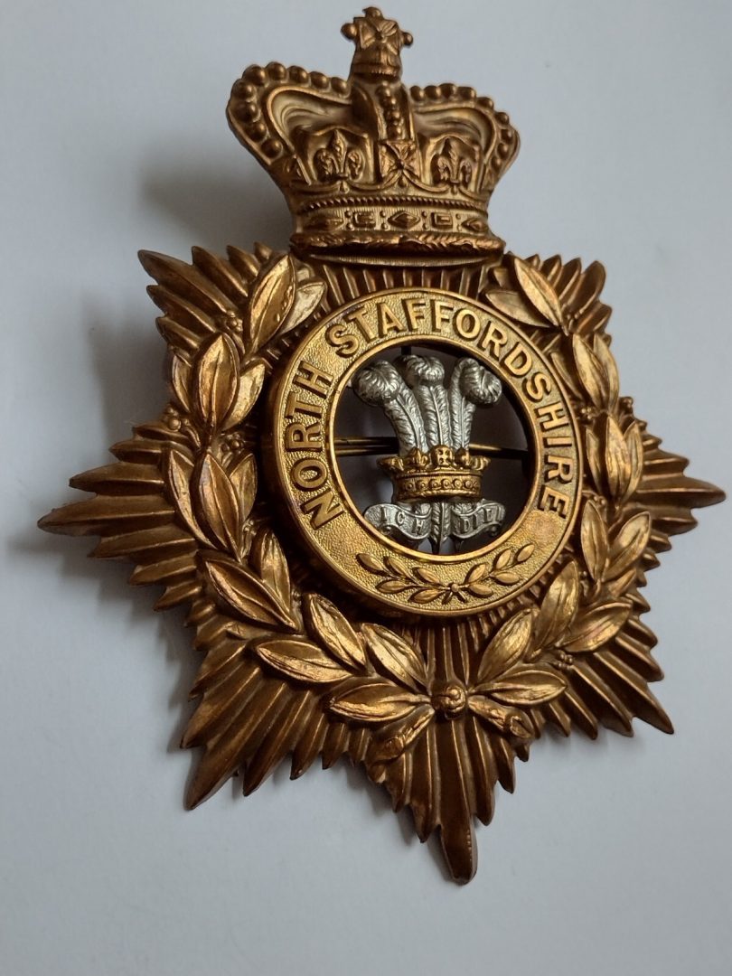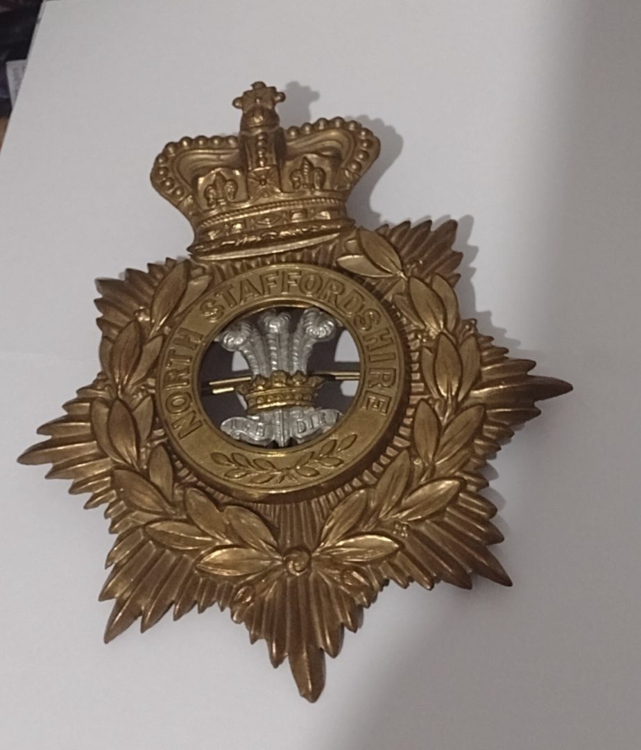 Victorian North Staffordshire Regiment Helmet Badge Bi-metal 6Lugs 130mm Antique
