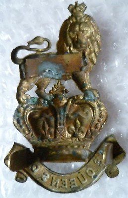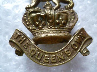 Victorian Queen’s Own Regiment Original Cap Badge QVC Brass 100mm Antique